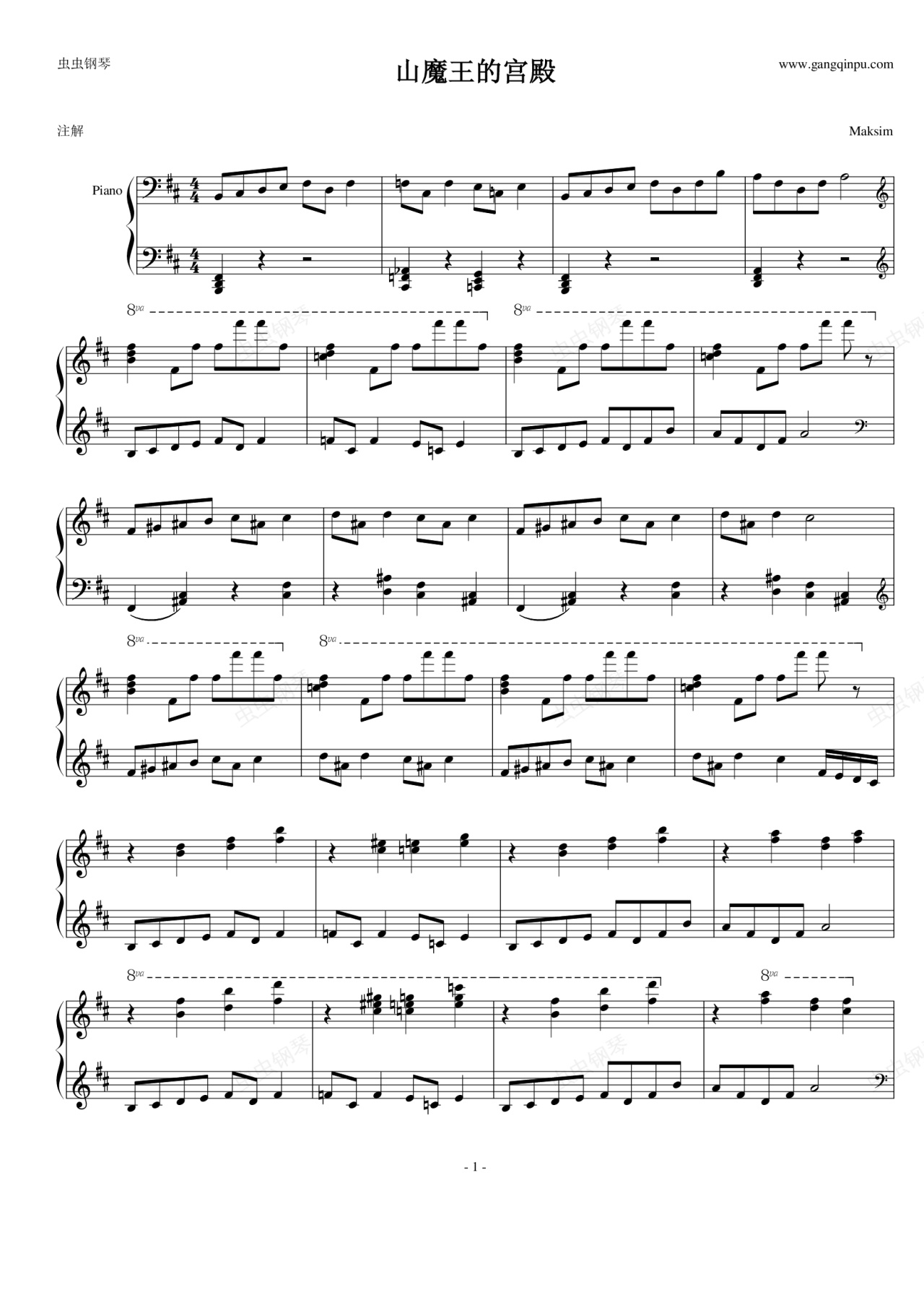 钢琴谱:Hall of the Mountain King