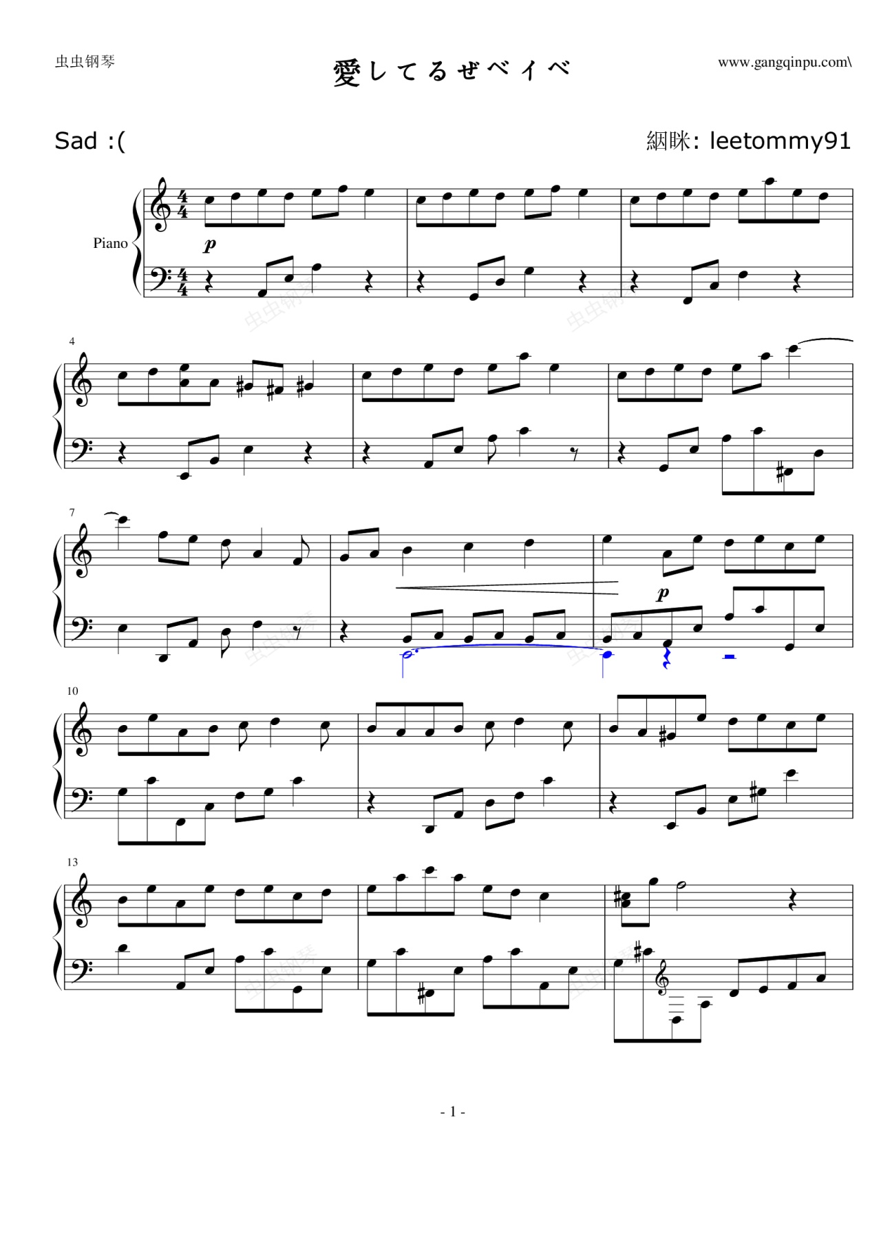 钢琴谱:愛してるぜベイベ★★-我爱你宝贝-原声音乐