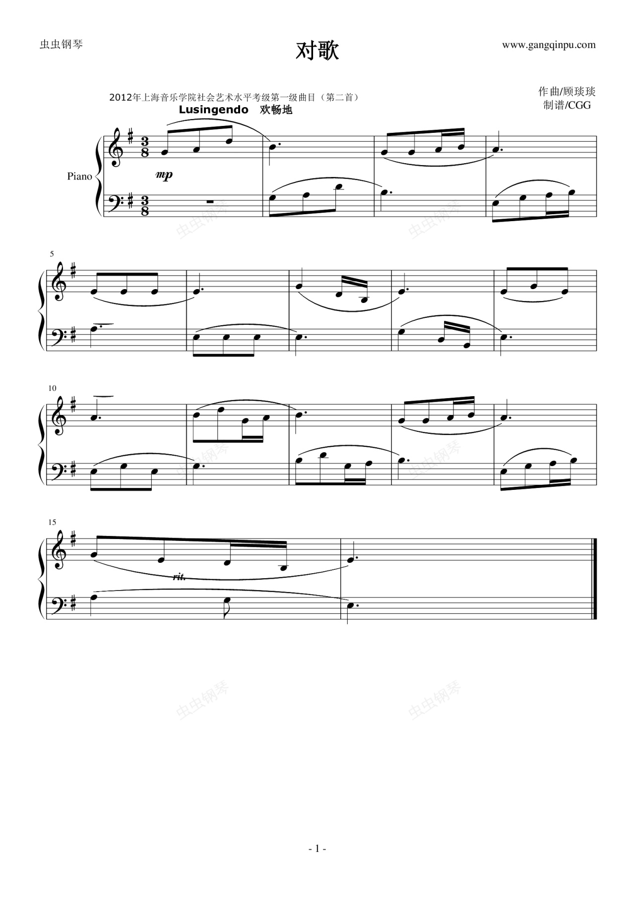 钢琴谱:对歌(2012年上音考级曲目)