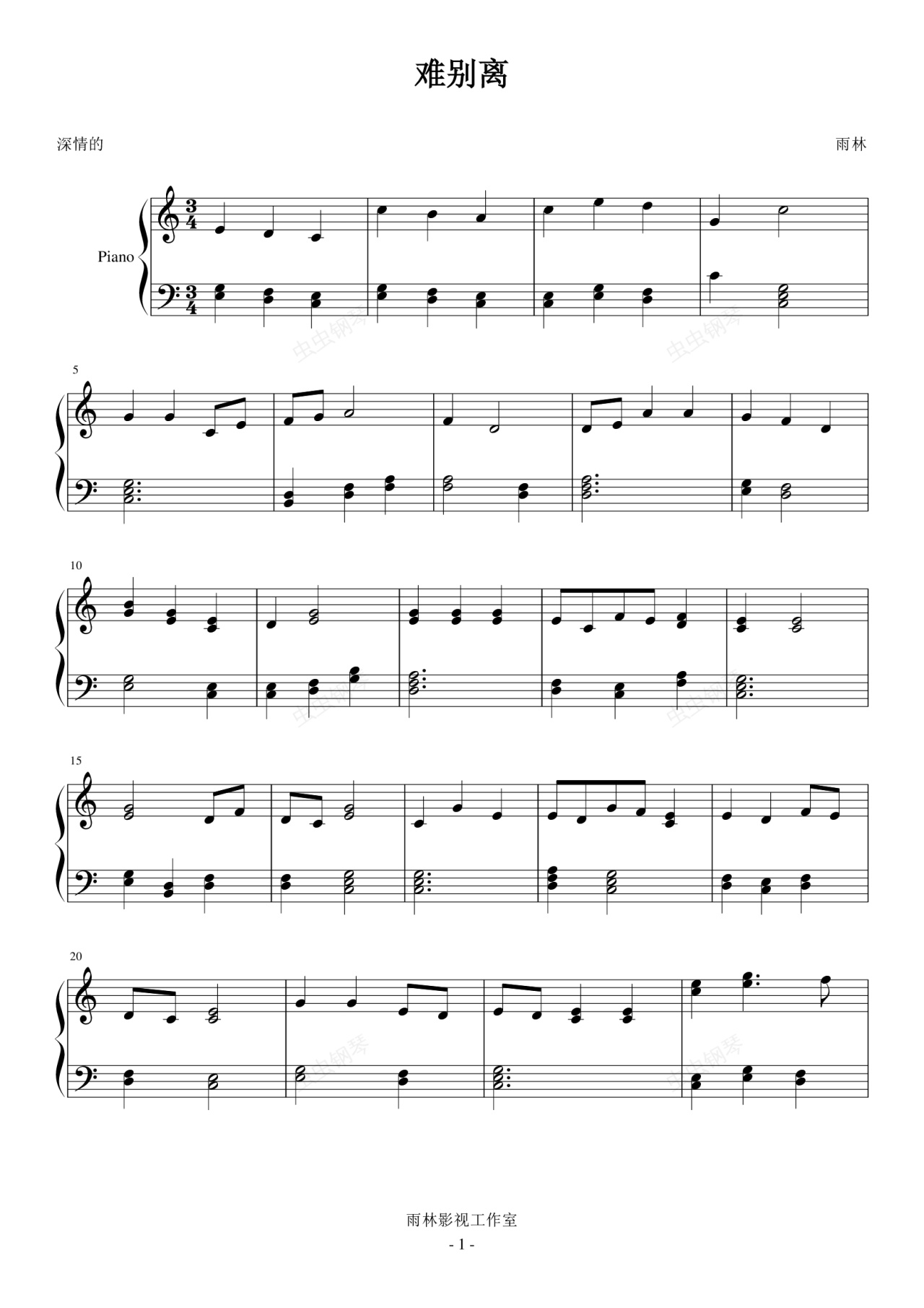 钢琴谱:难别离