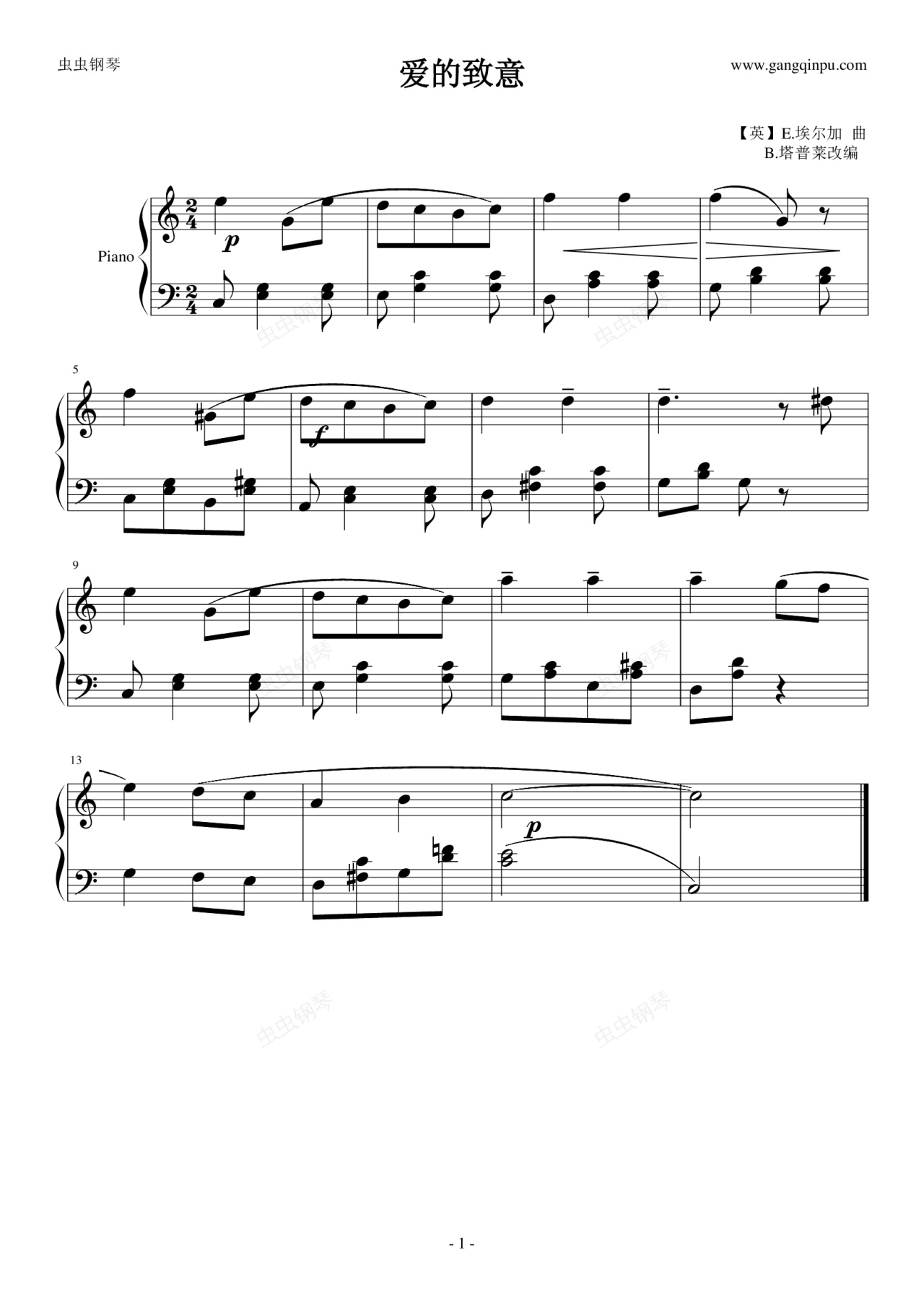 钢琴谱:爱的致意