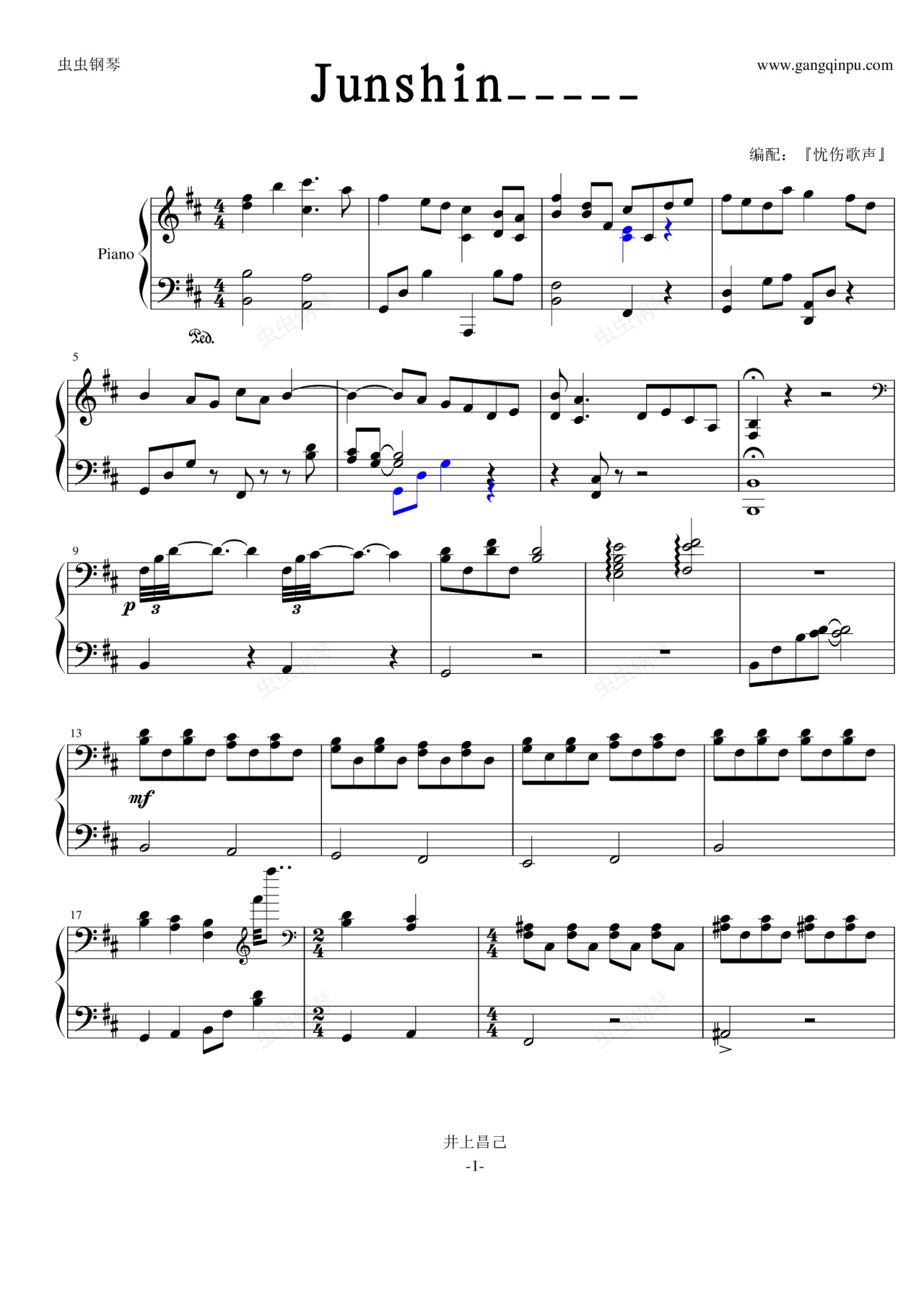 钢琴谱:纯心Junshin(第一章)----『忧伤歌声』