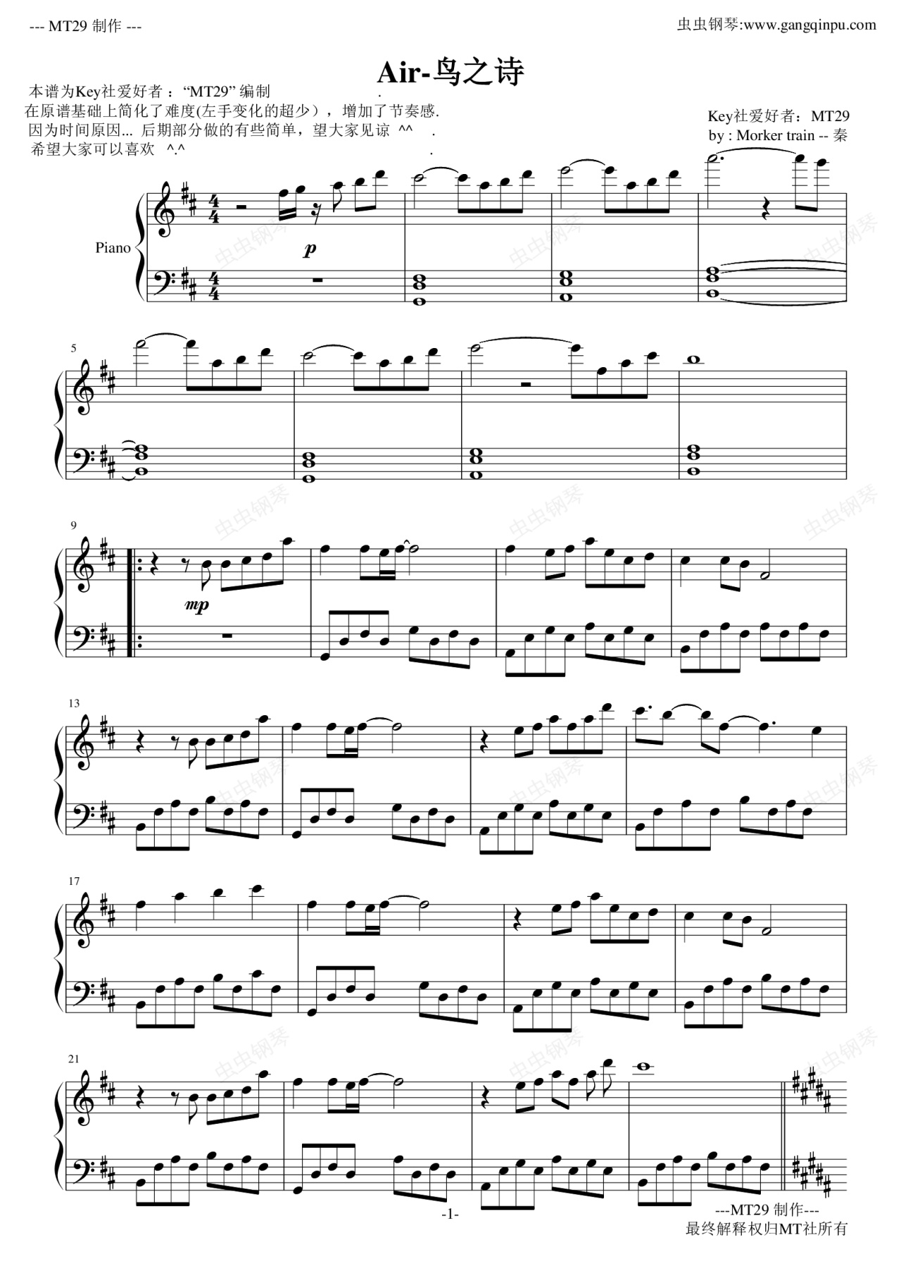 本乐谱为MT29的自制第二部大作!因为时间原因...