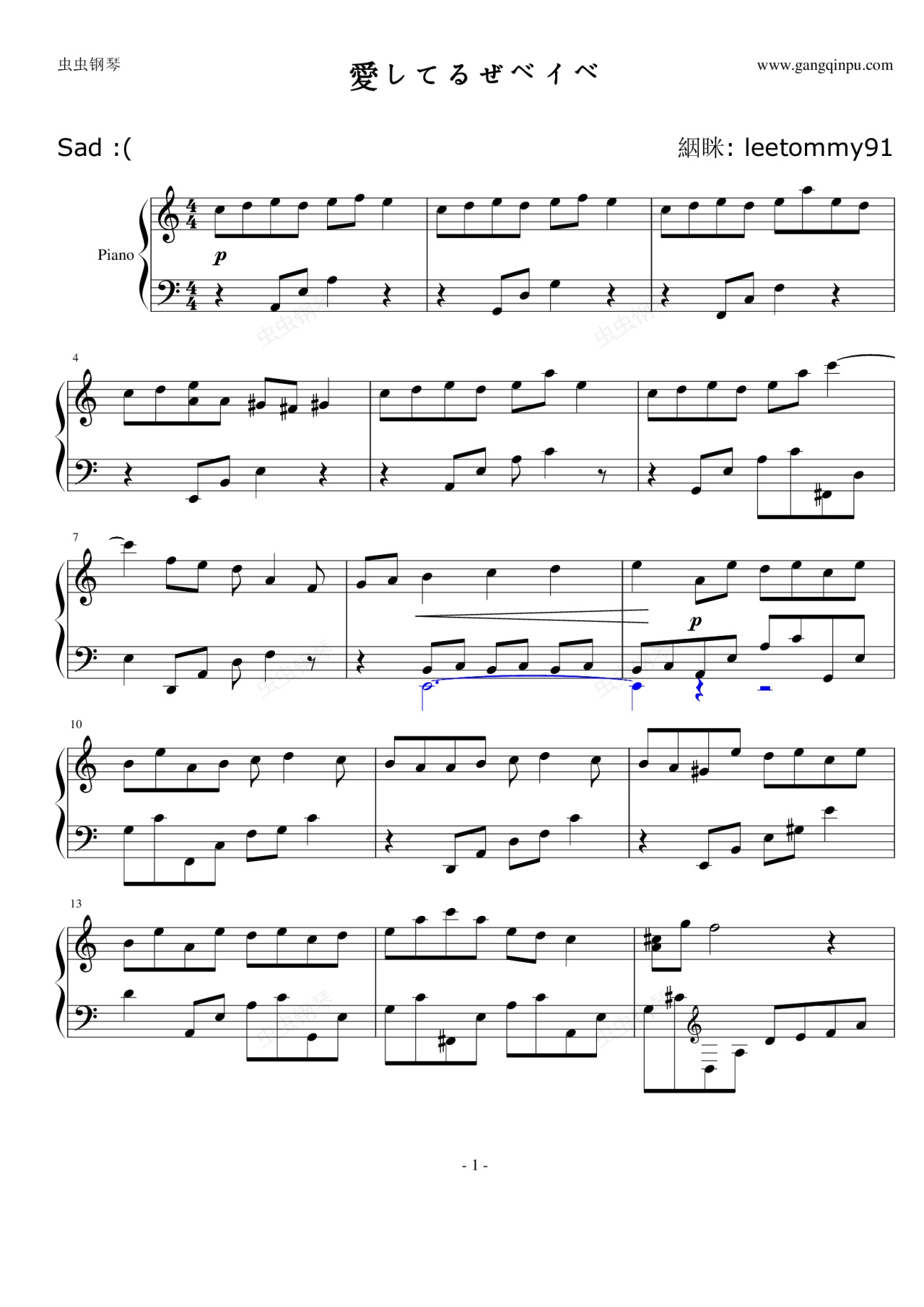 钢琴谱:我爱你宝贝(愛してるぜベイベ★★)-原聲音樂