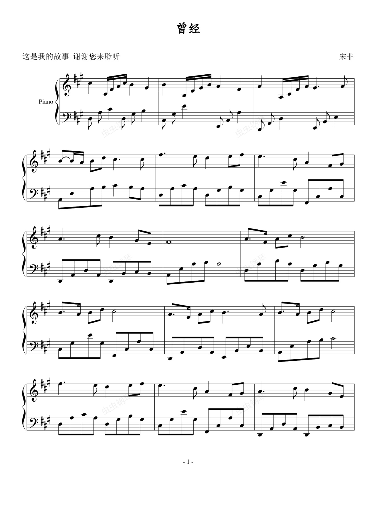 钢琴谱:曾经住着森林(钢琴独奏版)