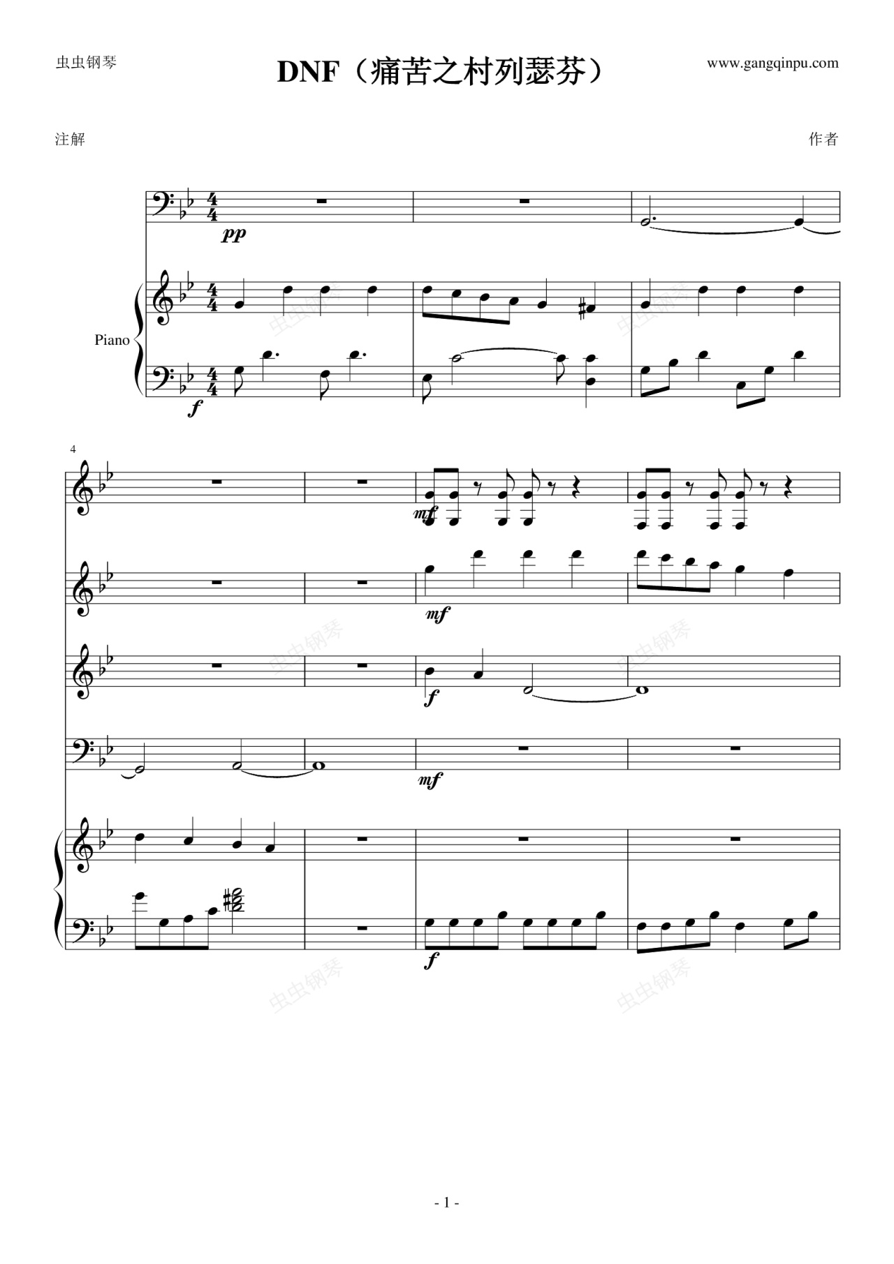 钢琴谱:DNF(痛苦之村列瑟芬)