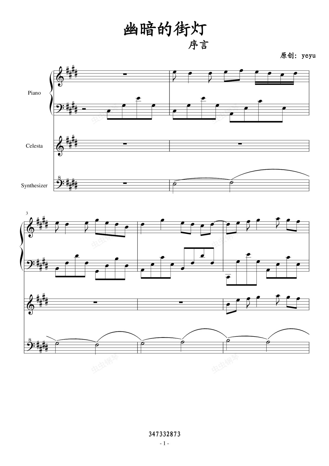 钢琴谱:街灯