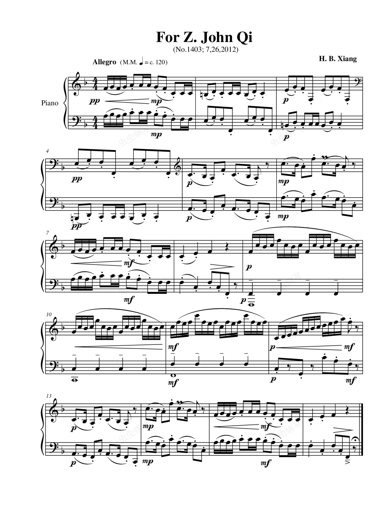 钢琴谱:For Z. John Qi