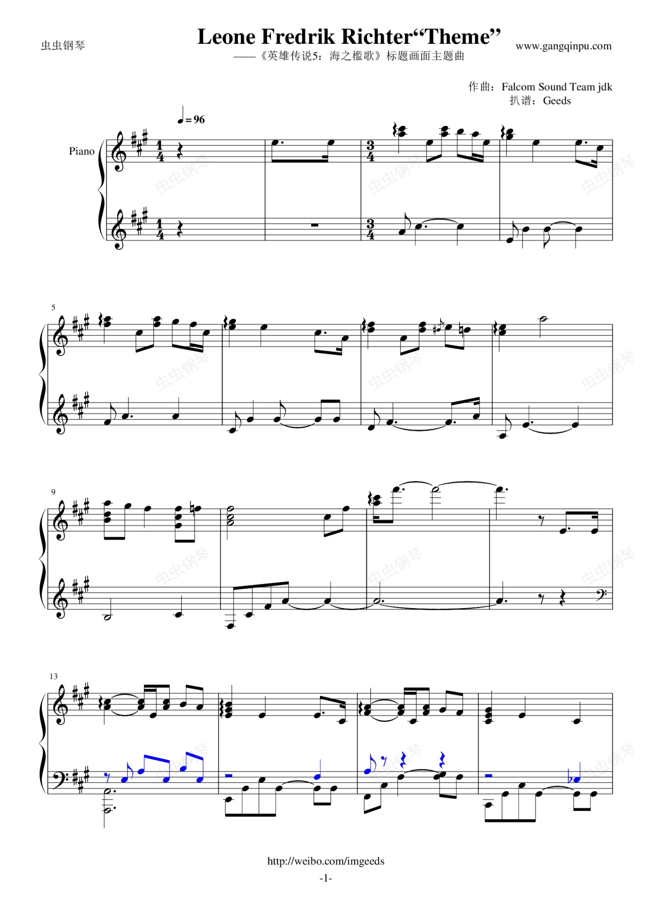 钢琴谱:Leone Fredrik Richter“Theme” 海之槛歌主题曲