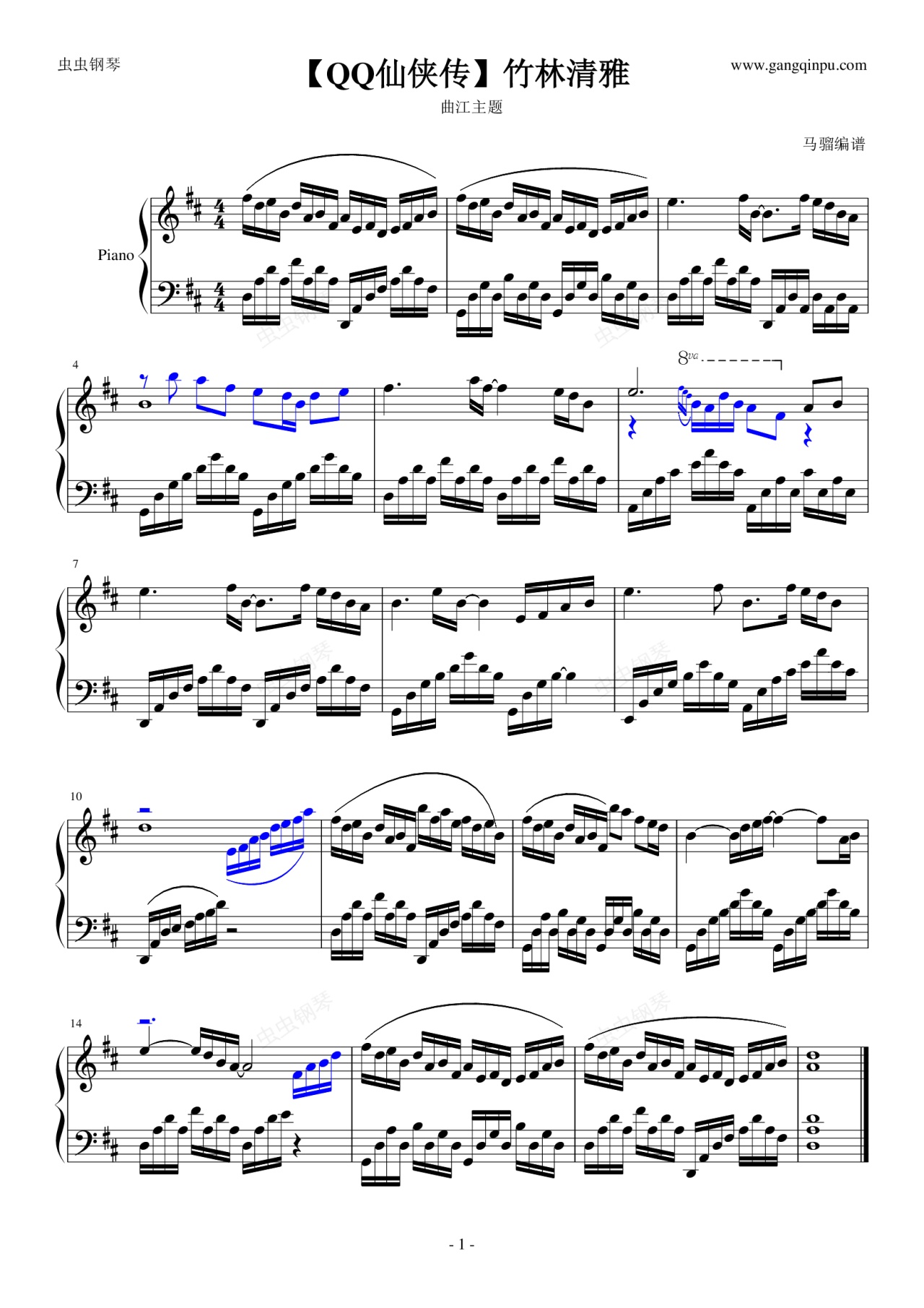 钢琴谱:【QQ仙侠传】竹林清雅