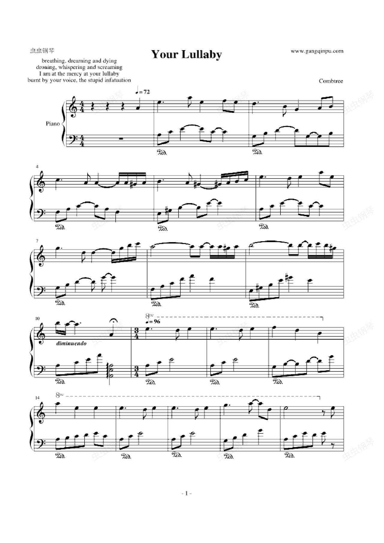 钢琴谱:Your Lullaby