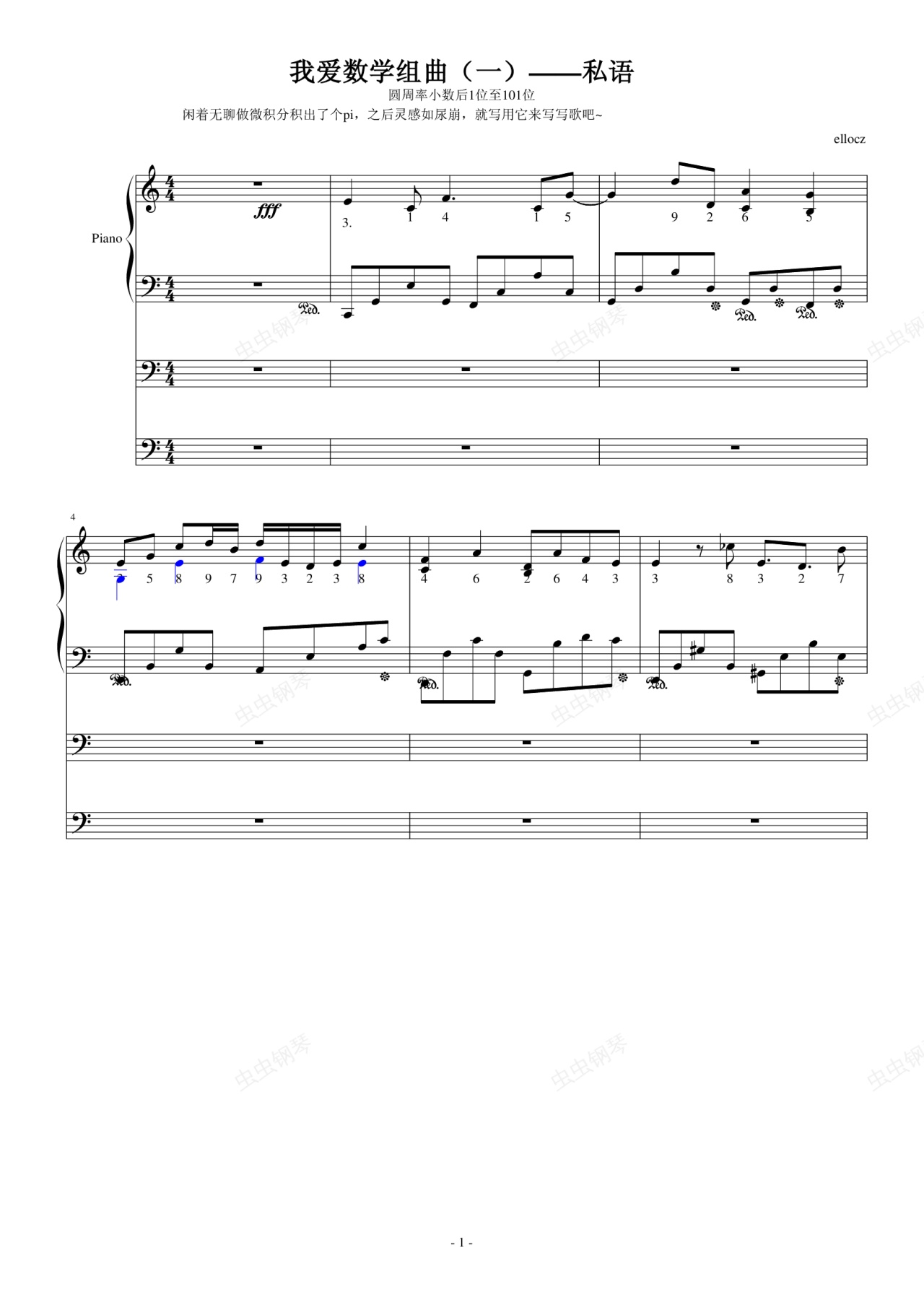 其中为了迎合歌曲需要有升半个音降半个音的变化,但是和圆周率的数字完全一致,大家凑合着听听看吧,虽然是首没有什么规律的即兴歌哈哈~