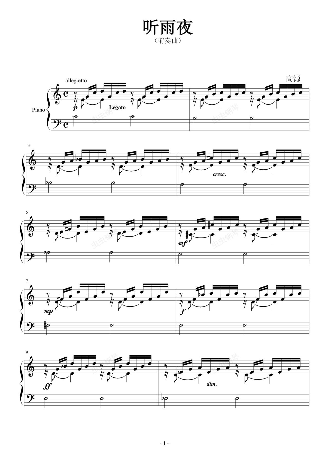 钢琴谱:听雨夜(前奏曲)
