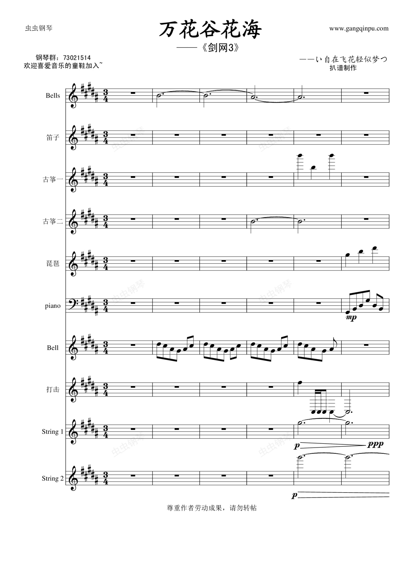 钢琴谱:万花谷花海【总谱】——剑侠情缘3