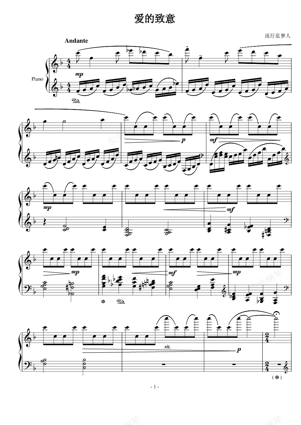 钢琴谱:爱的致意
