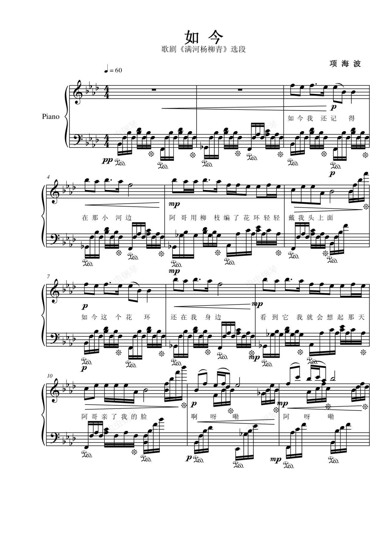 钢琴谱:民族声乐《如今》:送给eggming