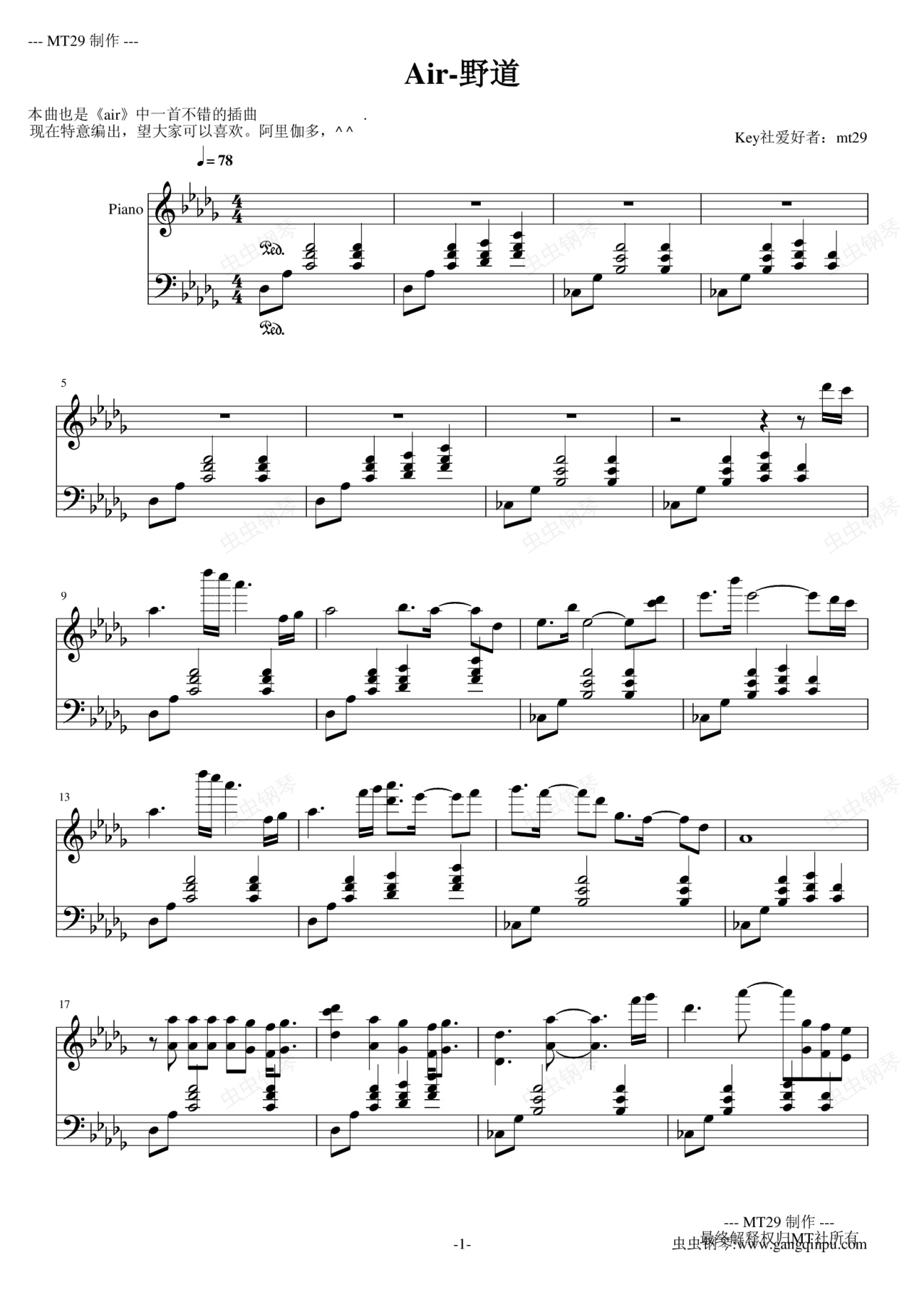 我是专门解决钢琴乐谱冷门资源的MT29,希望大家可以多关注我!多谢多谢^ ^ !