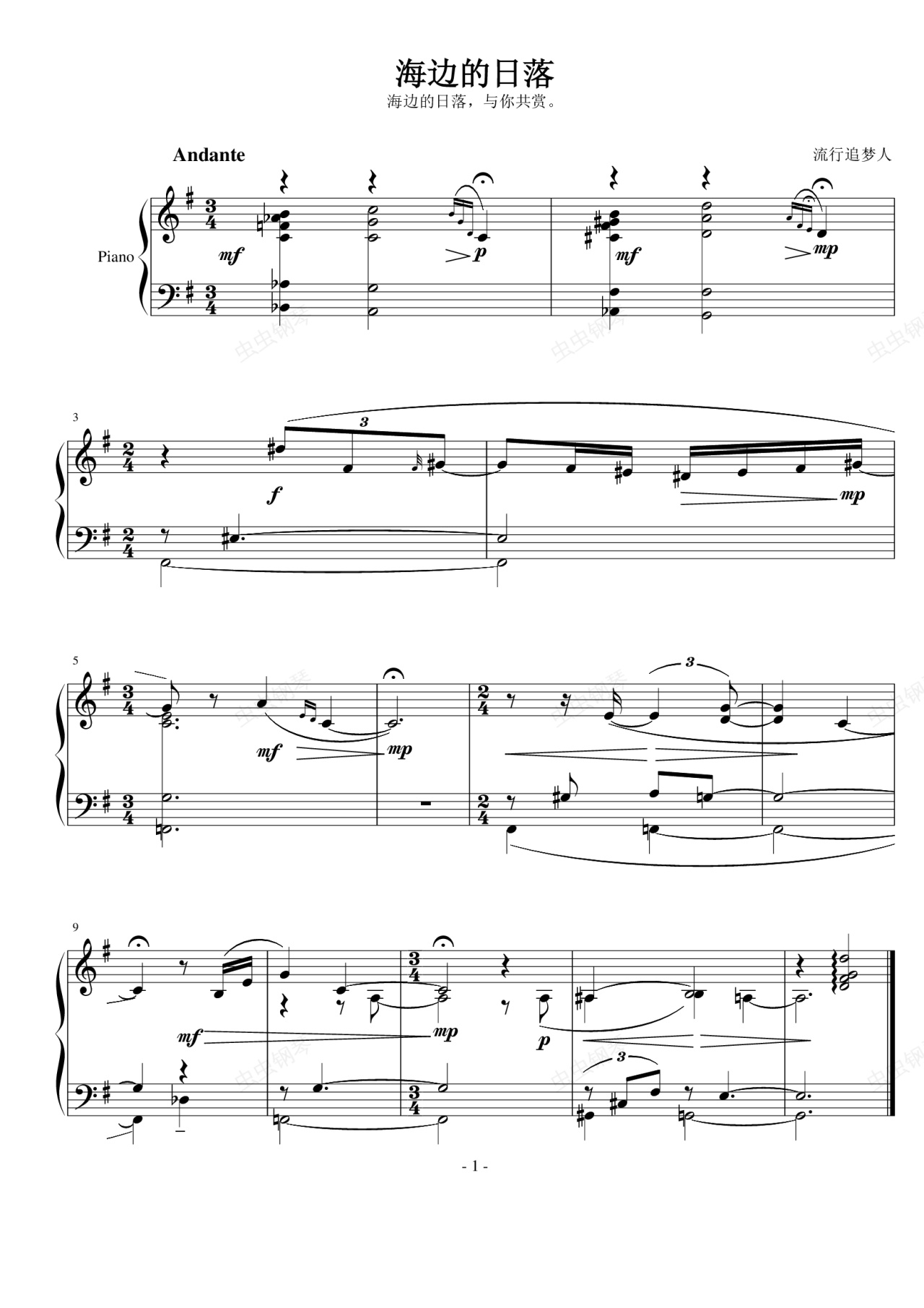 这次给大家送上两首曲子,左边是最近的一首小曲子《海边的日落》,右边是我最近写的一首比较长的曲子,叫做《星航》,幻想奏鸣曲的形式,有流行、浪漫、印象,也有民族和二十世纪,中间还有点巴洛克吧。中间有小段可以找到巴赫的第一首前奏曲与赋格的前奏曲的织体,还有小段写到那里突然想起了拉赫,就这样拉赫下去了,还有一段是冰咖啡三年前给我推荐的曲子《春宵夜曲》的印象。我最近的作品主要受二十世纪六七十年代作曲家菲利普·格拉斯( Glass)和现在活跃的作曲家沃尔德()的影响,这首曲子里有一段上升的音型就来自沃尔德的 and Joy的结尾的影响。之前的《爱的致意》里的右手八度也是受沃尔德的影响,是这位作曲家的一套弥撒里的第一首,Kyrie里小提琴和长笛的八度,印象非常深。我的《星航》头三分钟呈示了这首曲子的两个主题。这首曲子是在里做出来的,而且比较长,所以遗憾不能给大家送上谱子了。上来看到左右倒过来了,到修改页面点重新上传窗口提示文件超过10M,链接丢掉了。传了份到土豆,大家可以听下面的链接。
