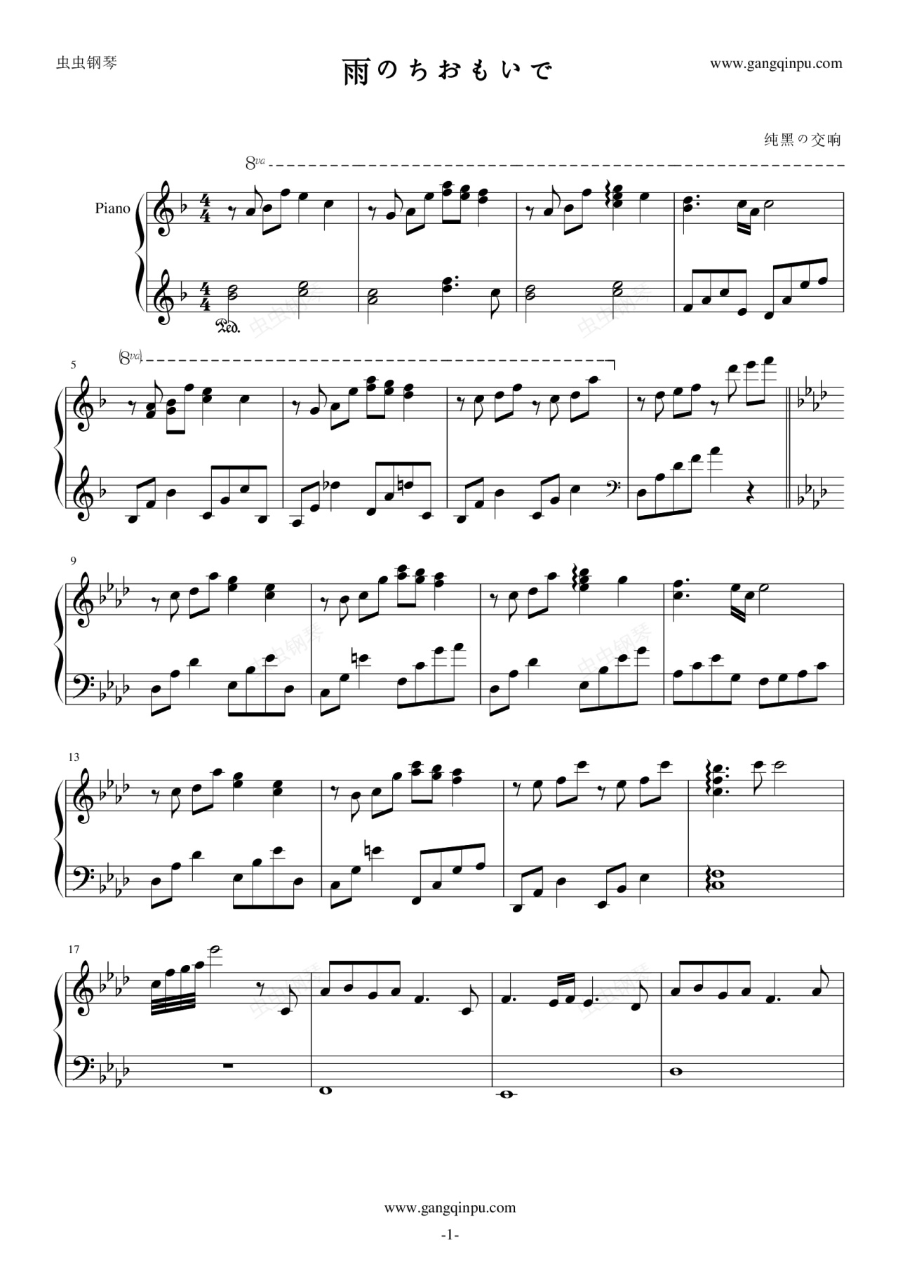 钢琴谱:雨のちおもいで-秋之回忆