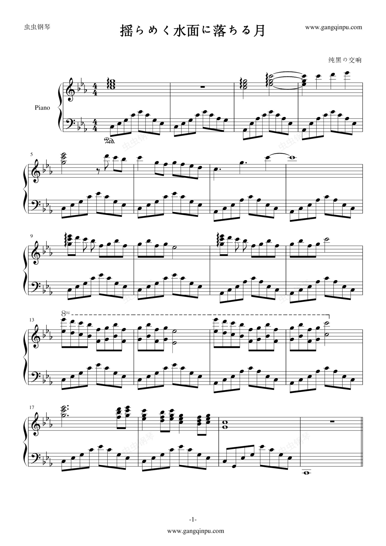 钢琴谱:揺らめく水面に落ちる月