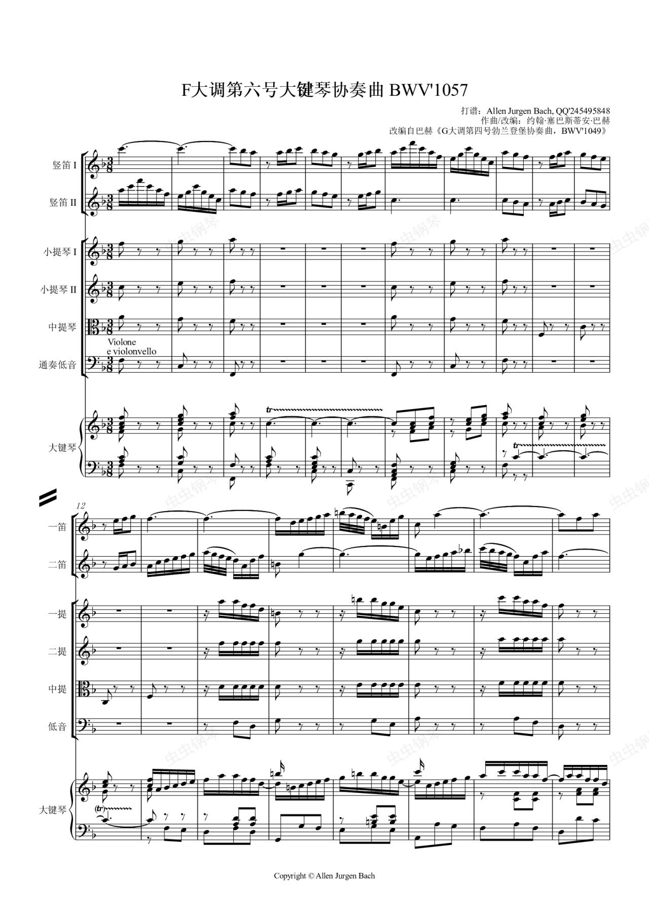 注:竖笛可用长笛代替,大键琴可用钢琴代替。