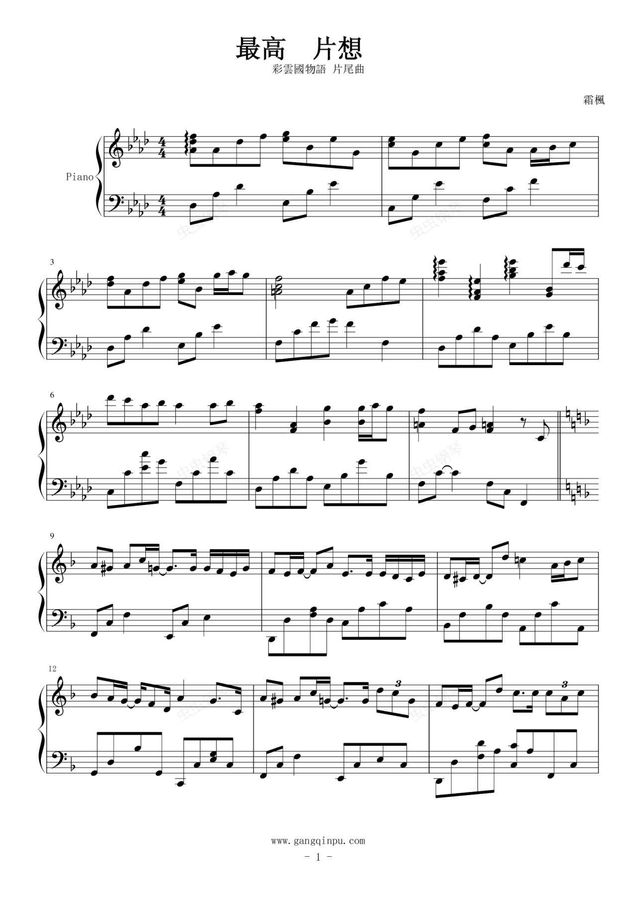 钢琴谱:田井中彩智-最高的片想- (彩雲國物語ED1)