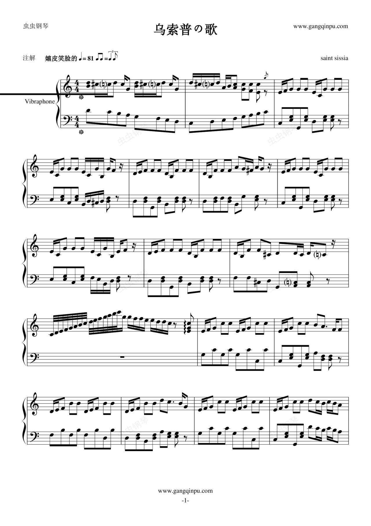 钢琴谱:乌索普の歌