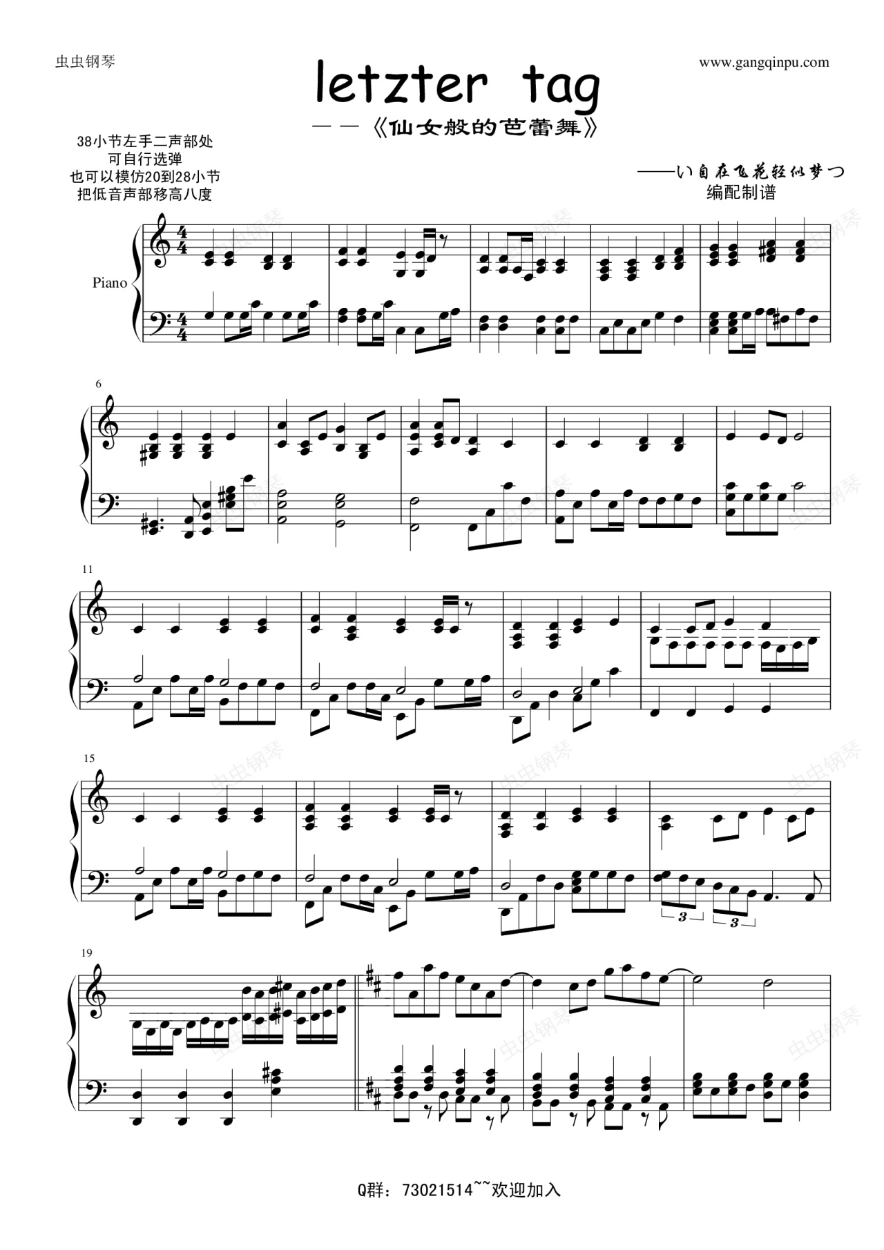 钢琴谱:Letzter Tag—【仙女般的芭蕾舞】