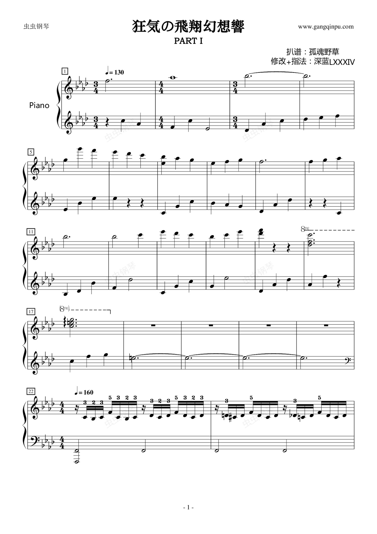 孤魂野草扒的已经很好了,在此只是稍作修正。比如升降号的标示,一些简化(原谱42小节)等等。原谱参见/html/ 或 /?tid=