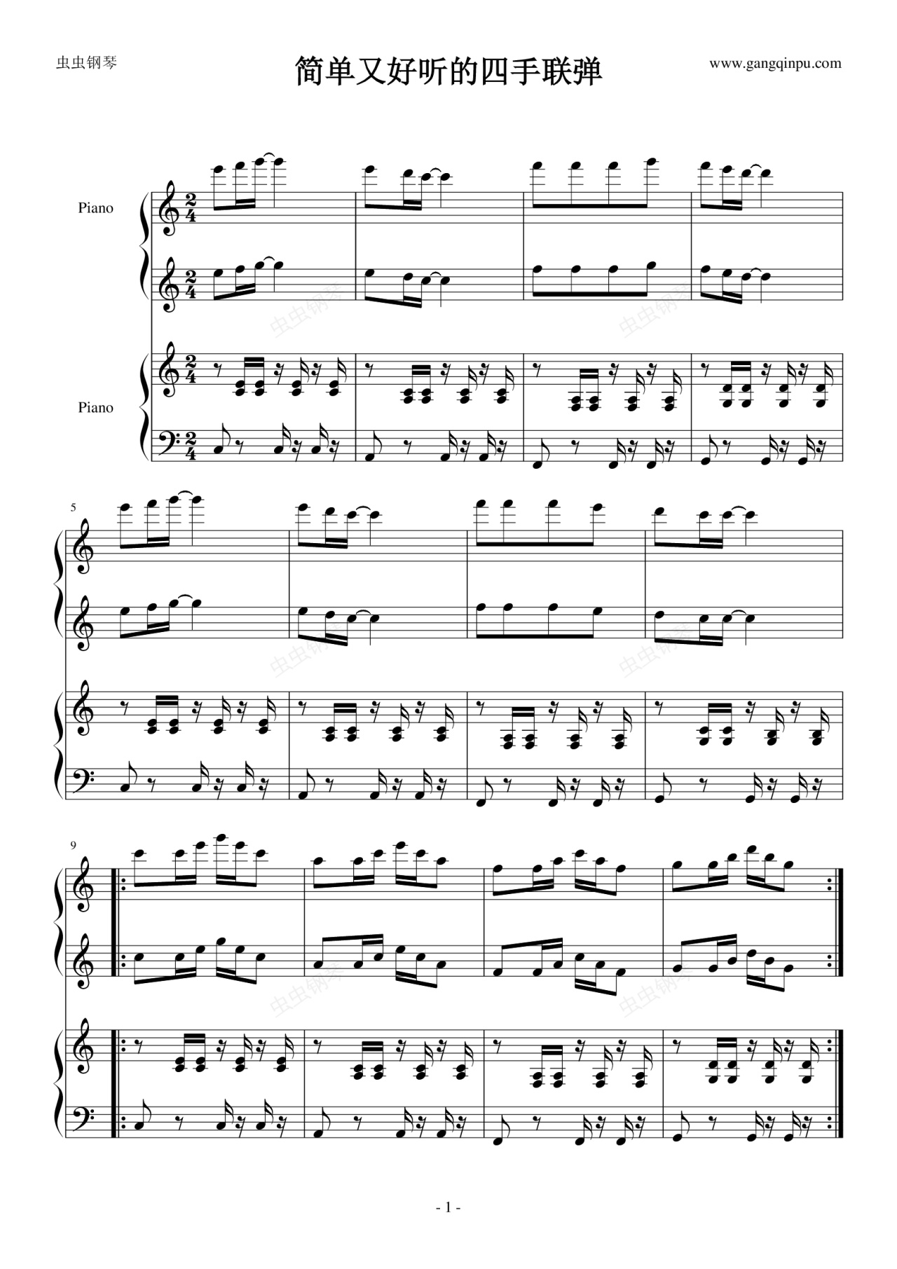 钢琴谱:简单又好听的四手联弹