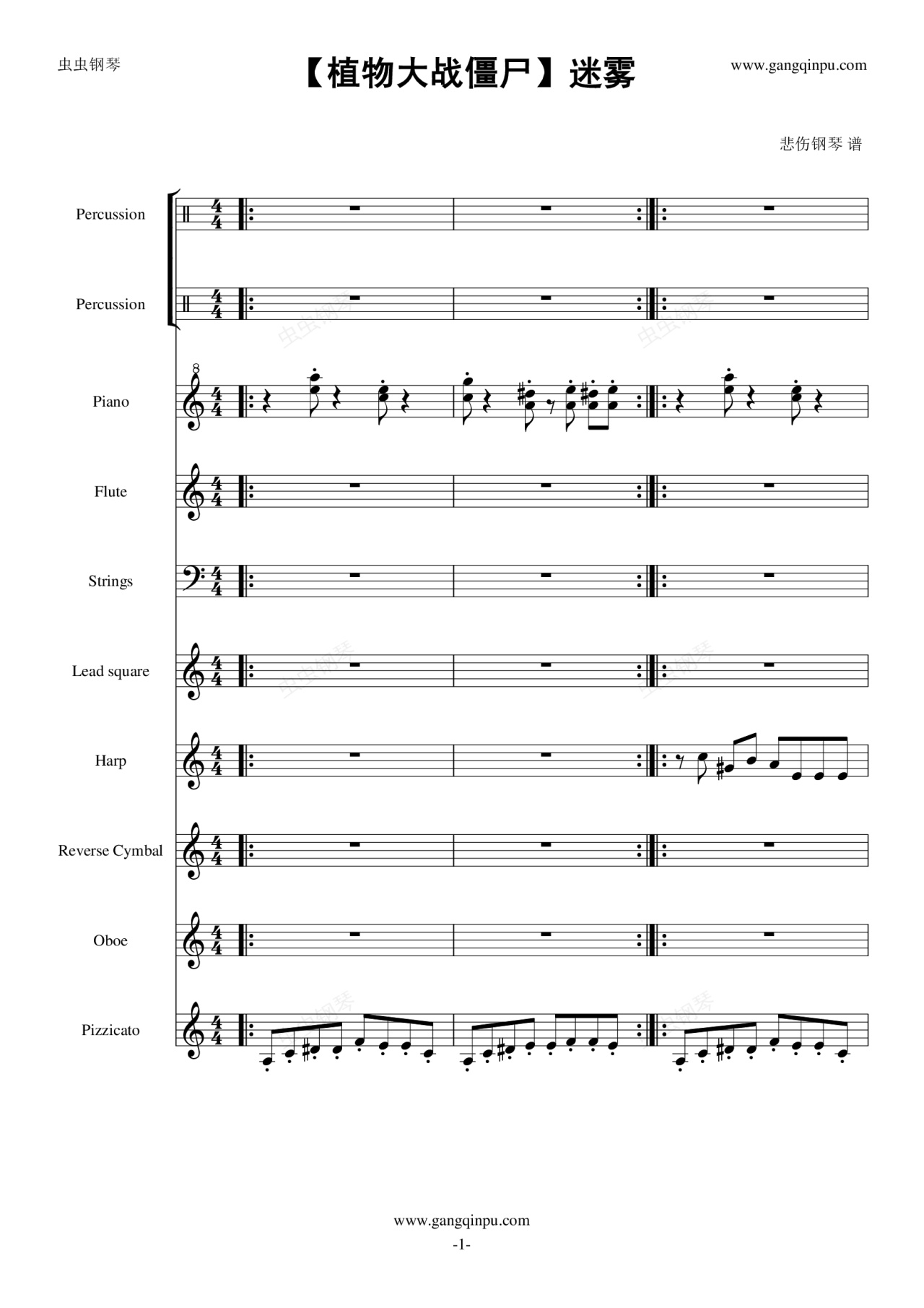钢琴谱:【植物大战僵尸】迷雾