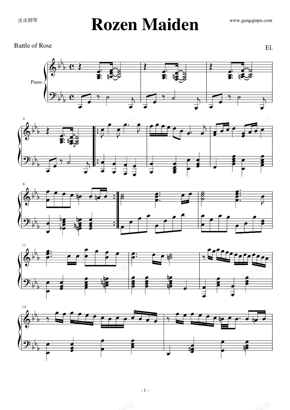 钢琴谱:《蔷薇少女》插曲《Battle of Rose》