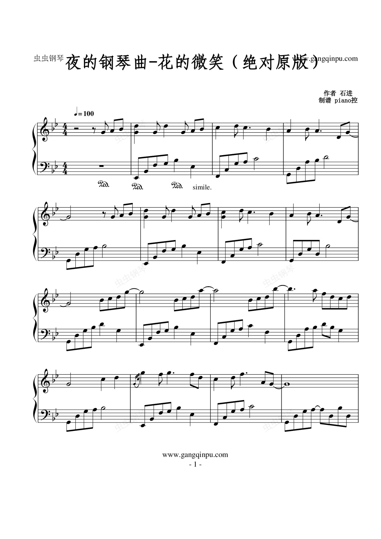 钢琴谱:夜的钢琴曲-花的微笑(绝对原版)