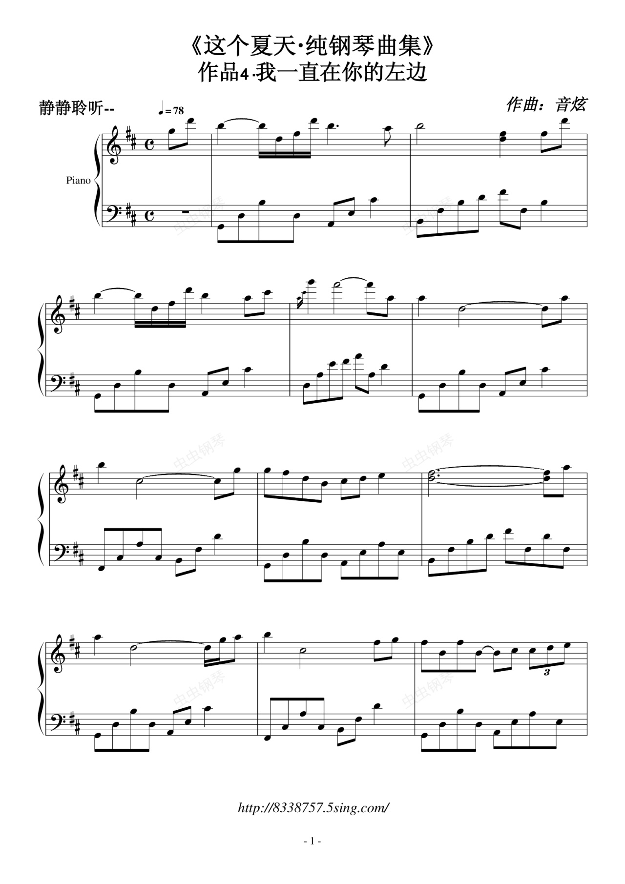 钢琴谱:《这个夏天》作品4·我一直在你的左边