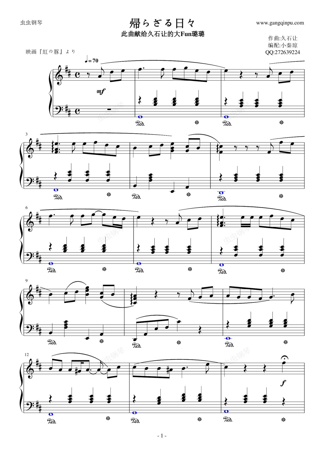 钢琴谱:动画片《红猪》原声 《波哥和吉娜 》