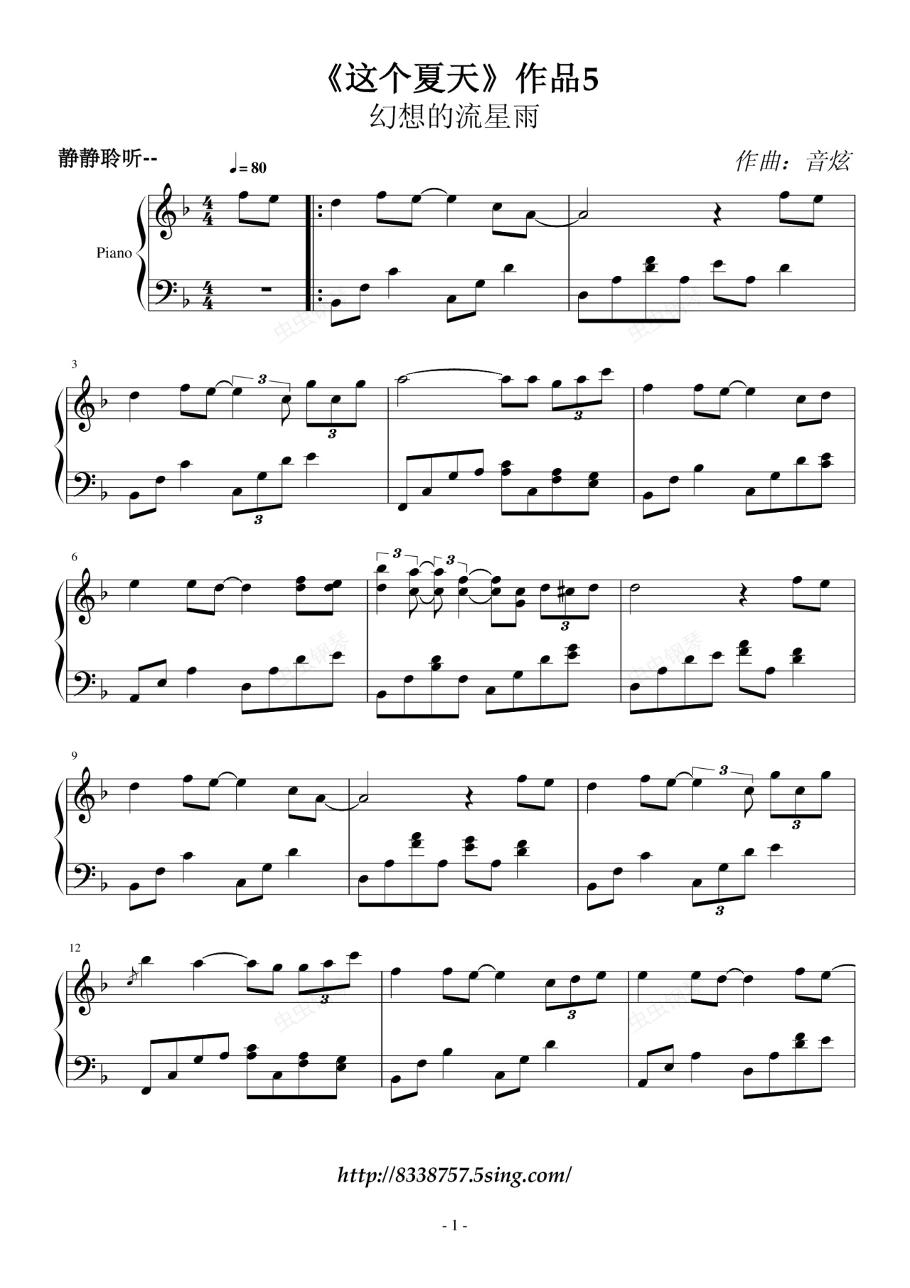 钢琴谱:《这个夏天》作品5·幻想的流星雨