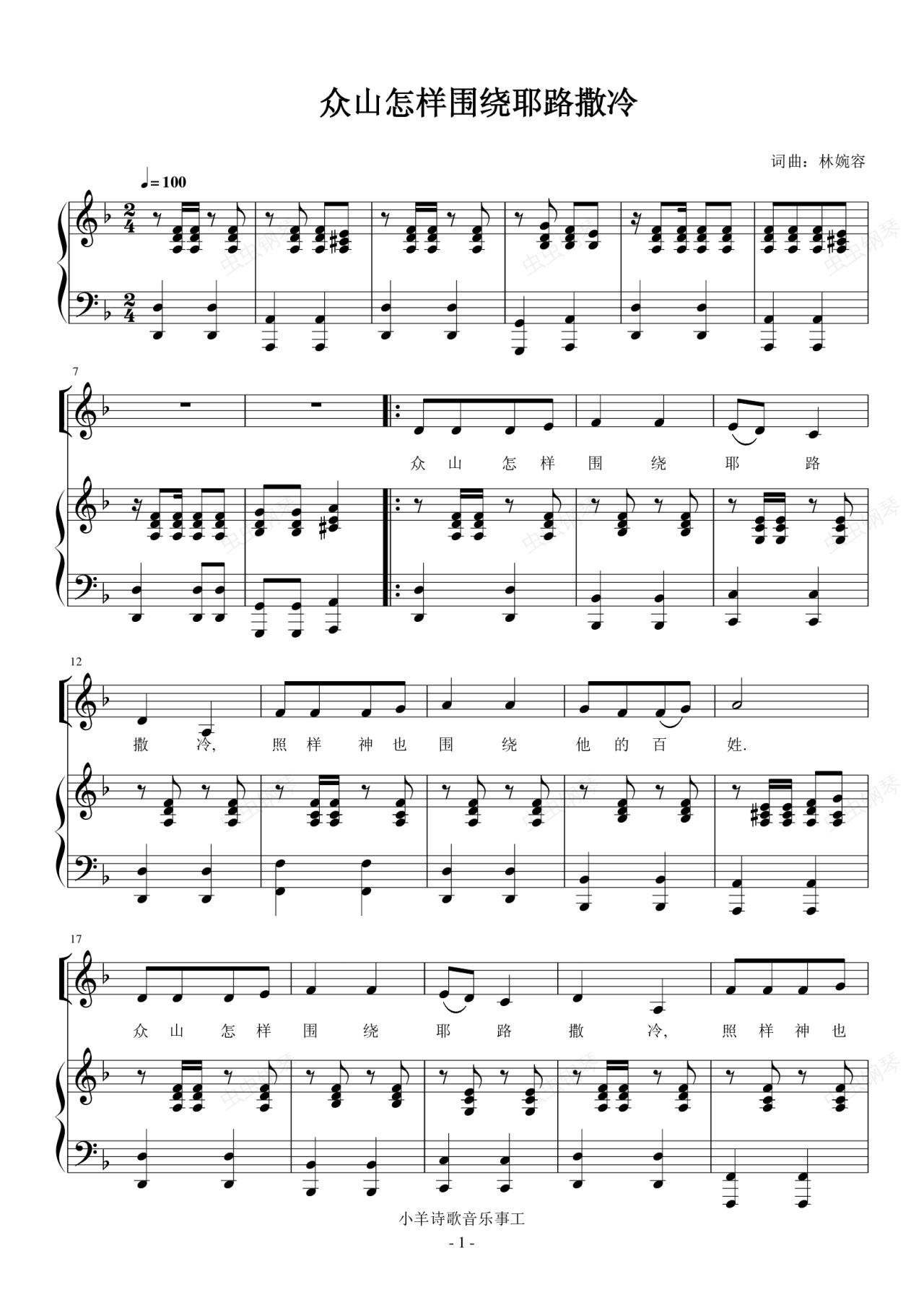 钢琴谱:众山怎样围绕耶路撒冷