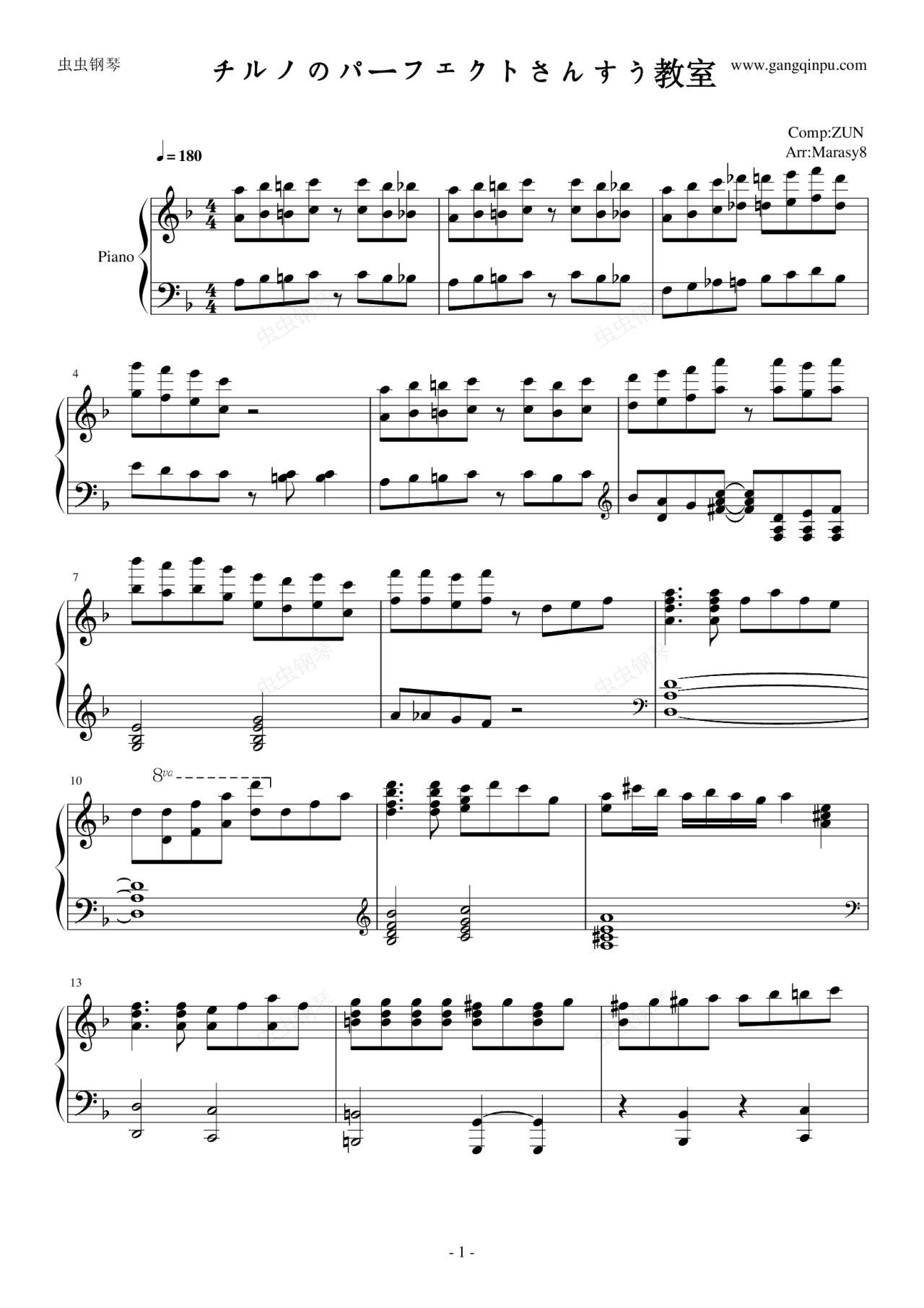 钢琴谱:触手猴(Marasy8)チルノのパーフェクトさんすう教室 Marasy8