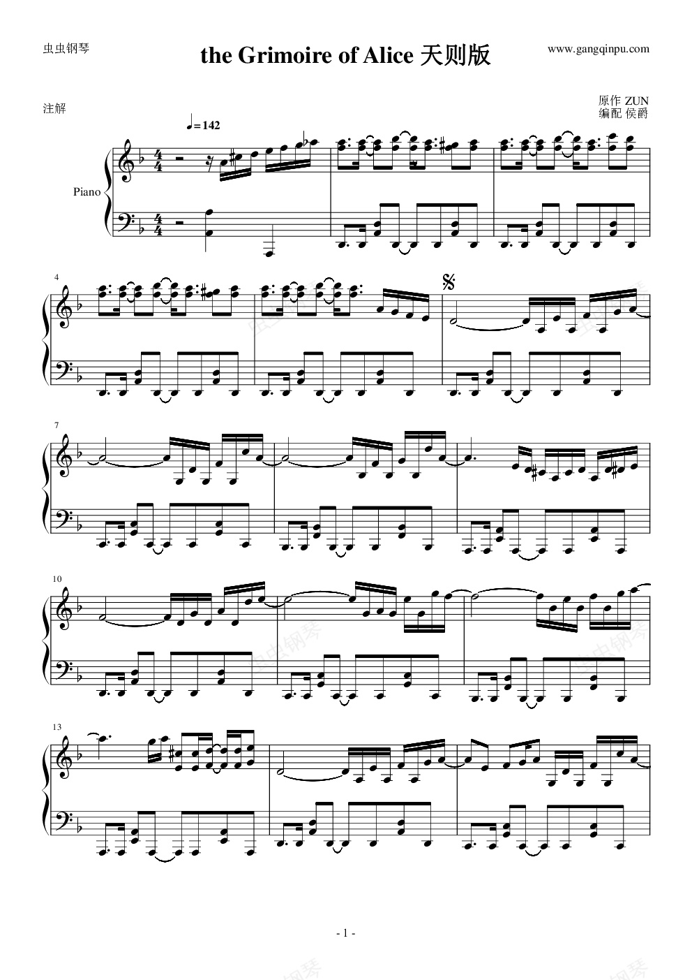 钢琴谱:【东方】the Grimoire of Alice 天则版