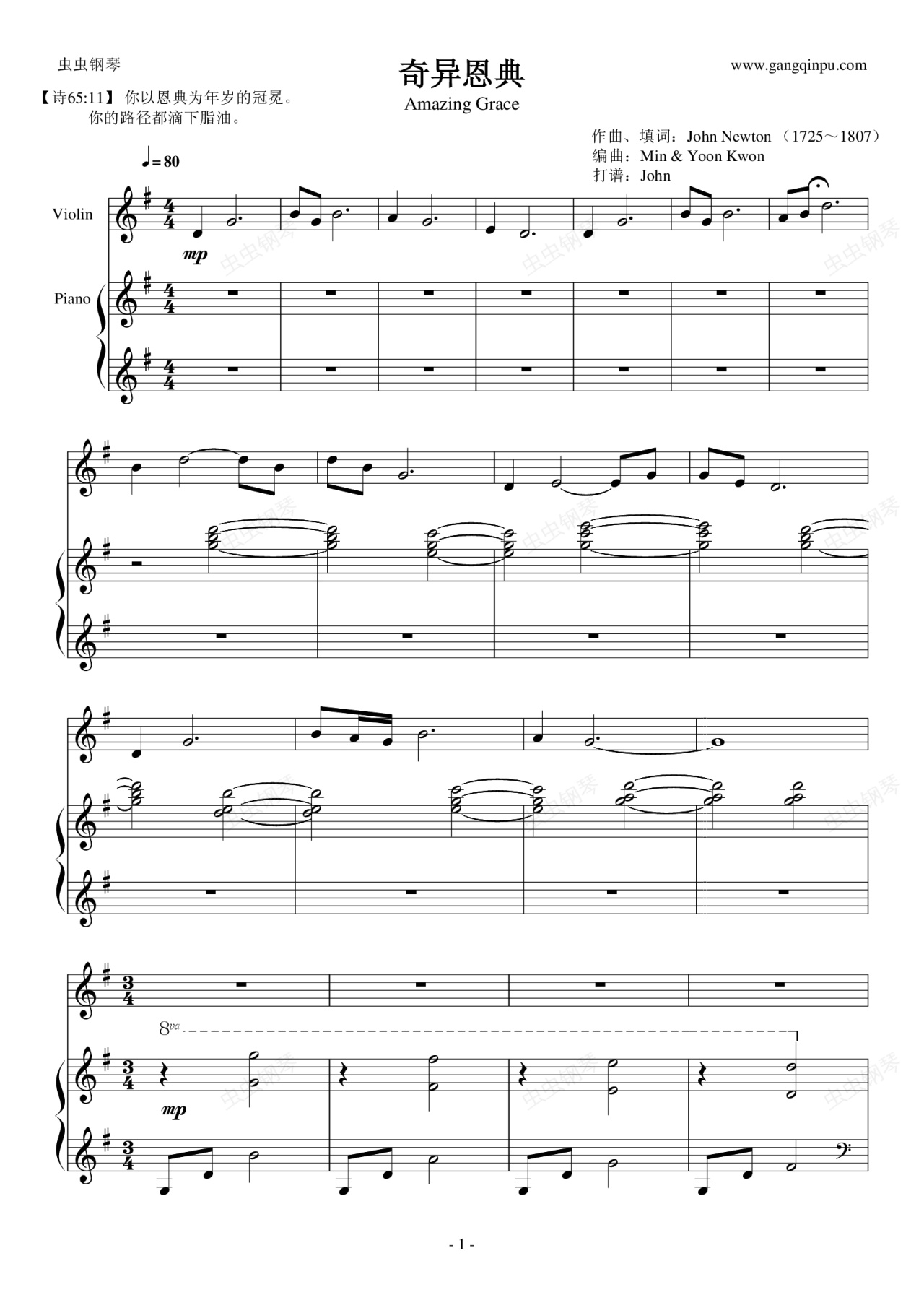 钢琴谱:Amazing Grace