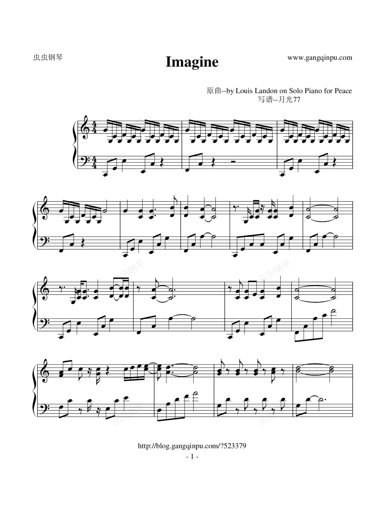 钢琴谱:Imagine (by Louis Landon on Solo Piano for Peace)