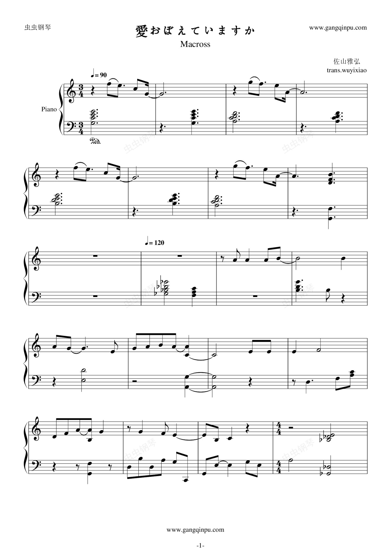 钢琴谱:爱·おぼえていますか(可曾记得爱 Macross)