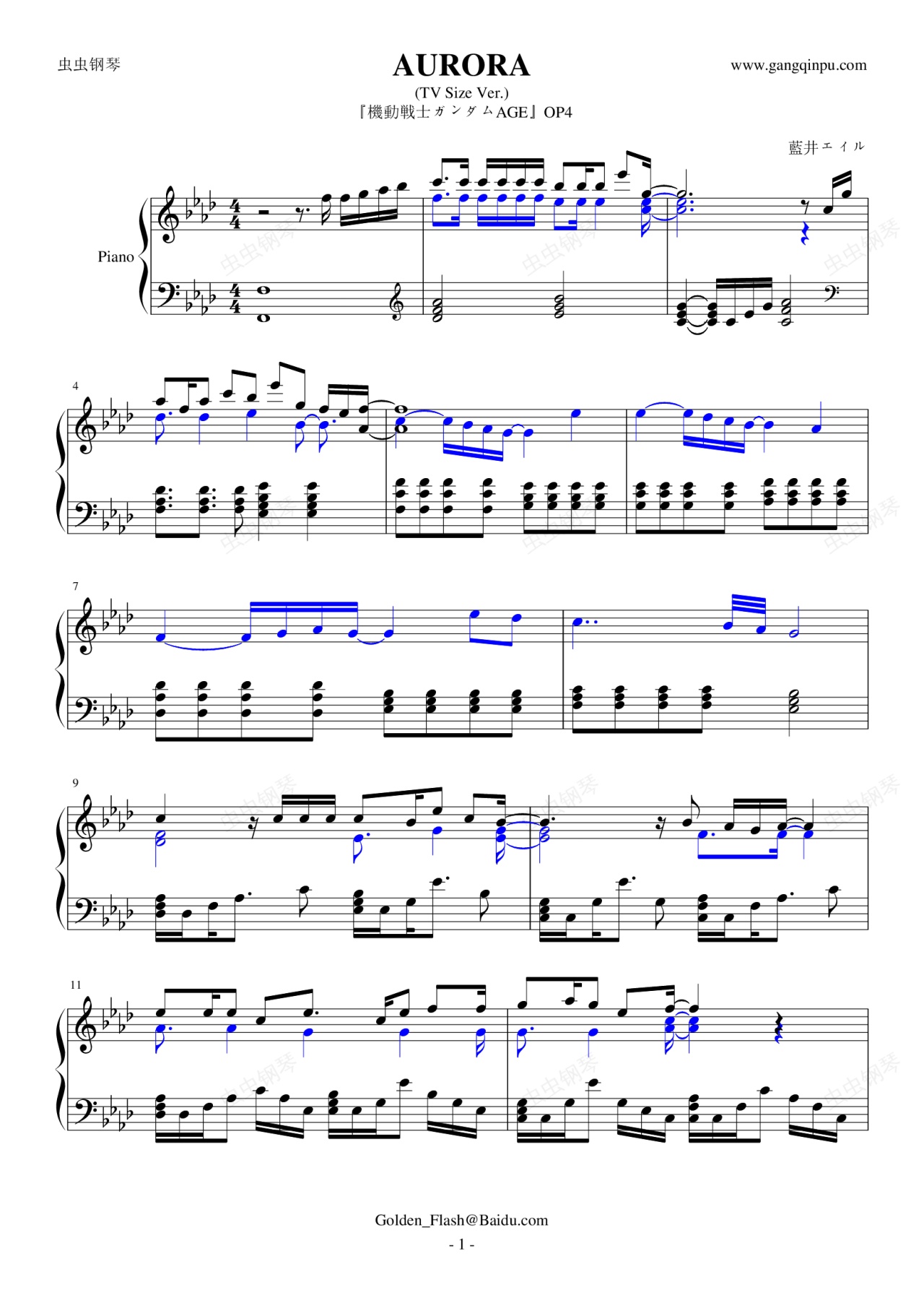 钢琴谱:高达Age-AURORA