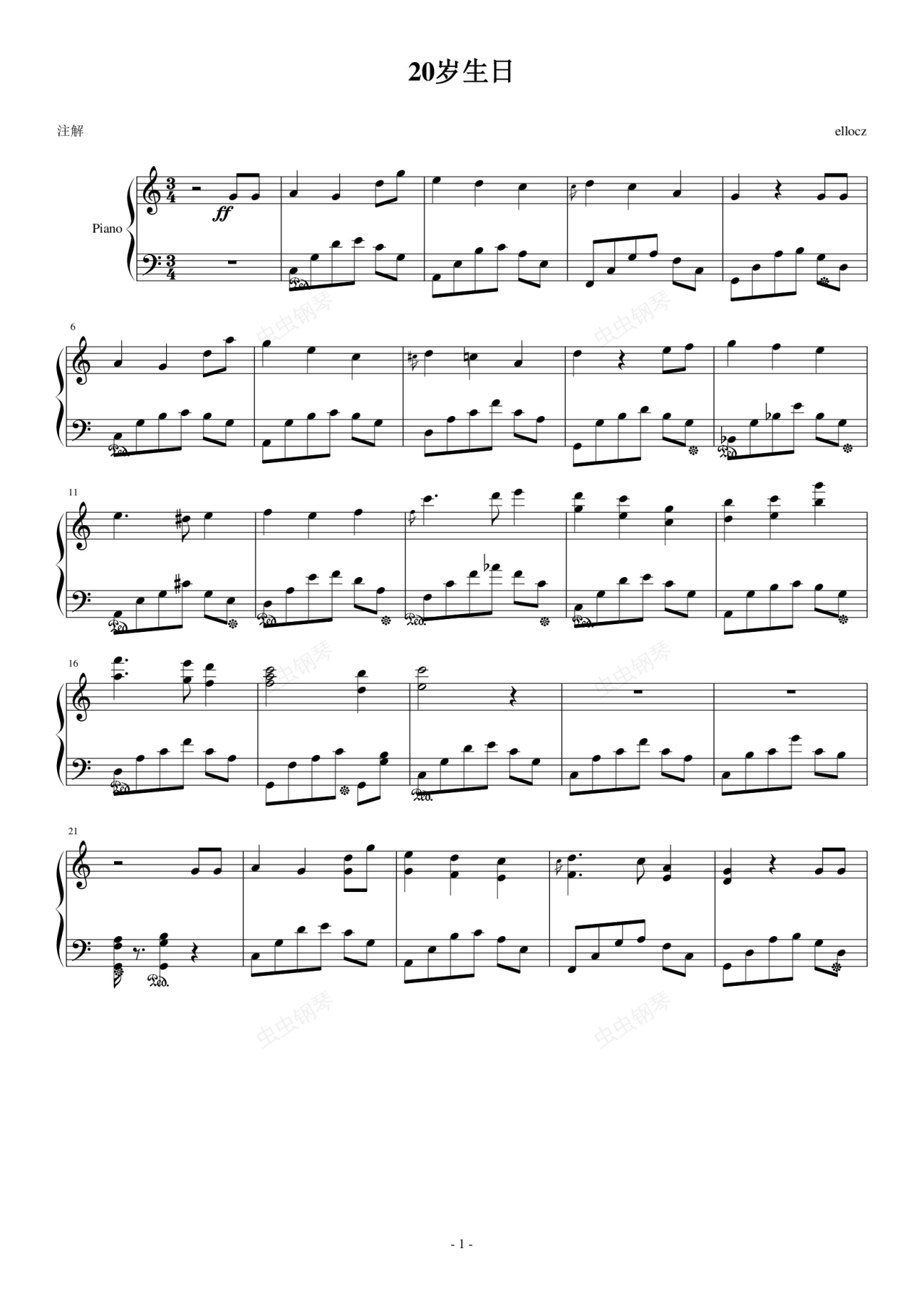 钢琴谱:20th Birthday