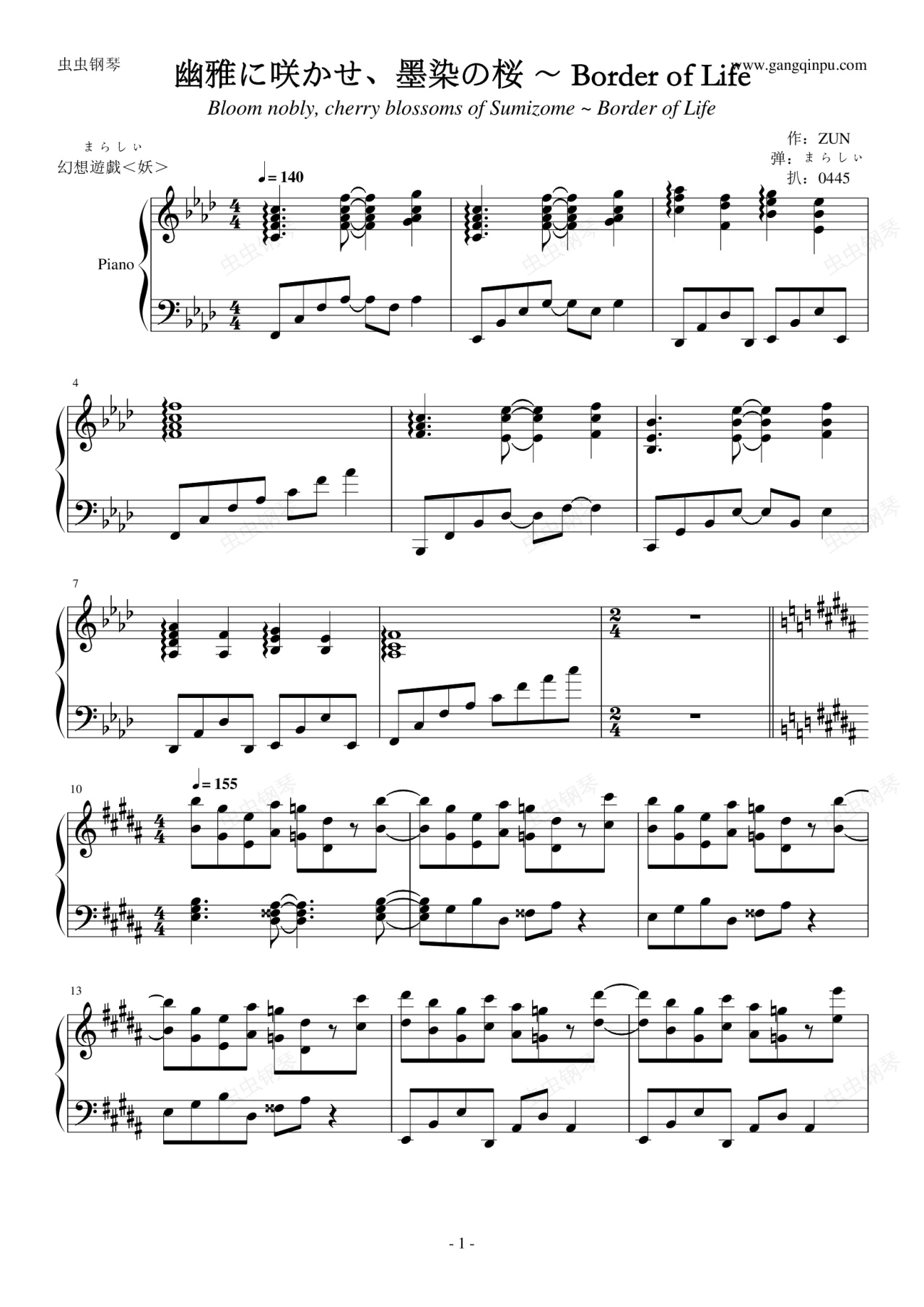 钢琴谱:【东方妖妖梦】【触手猴】幽雅に咲かせ、墨染の桜 ~ Border of Life