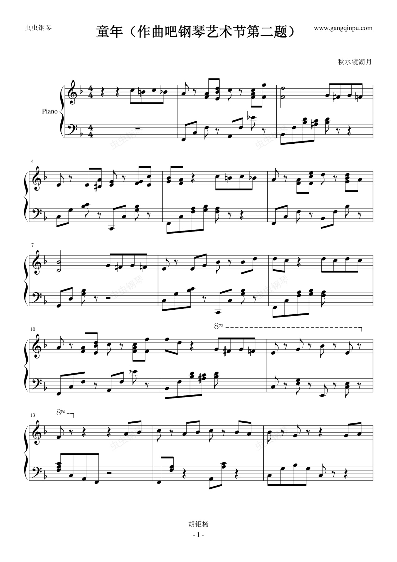 钢琴谱:童年(作曲吧钢琴艺术节第二题)