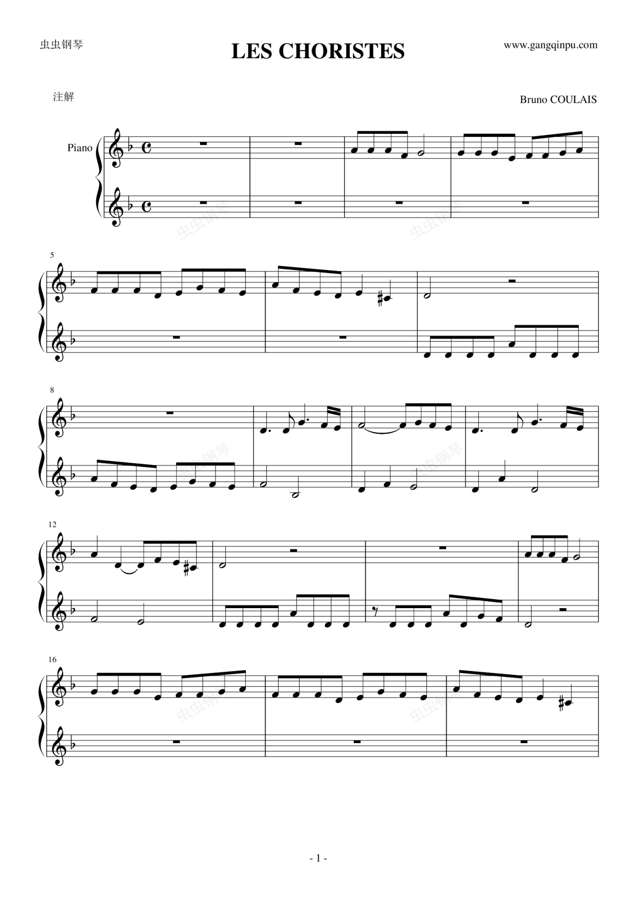 钢琴谱:放牛班的春天主题曲童声二重唱