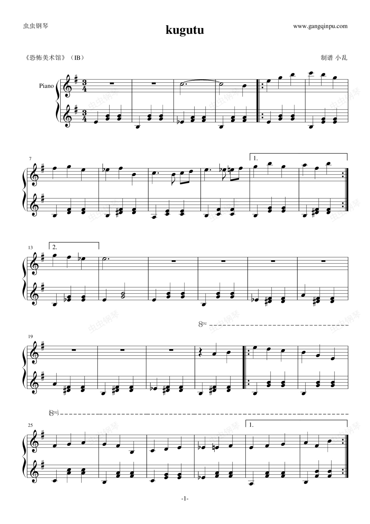 钢琴谱:【Ib/恐怖美术馆】kugutu