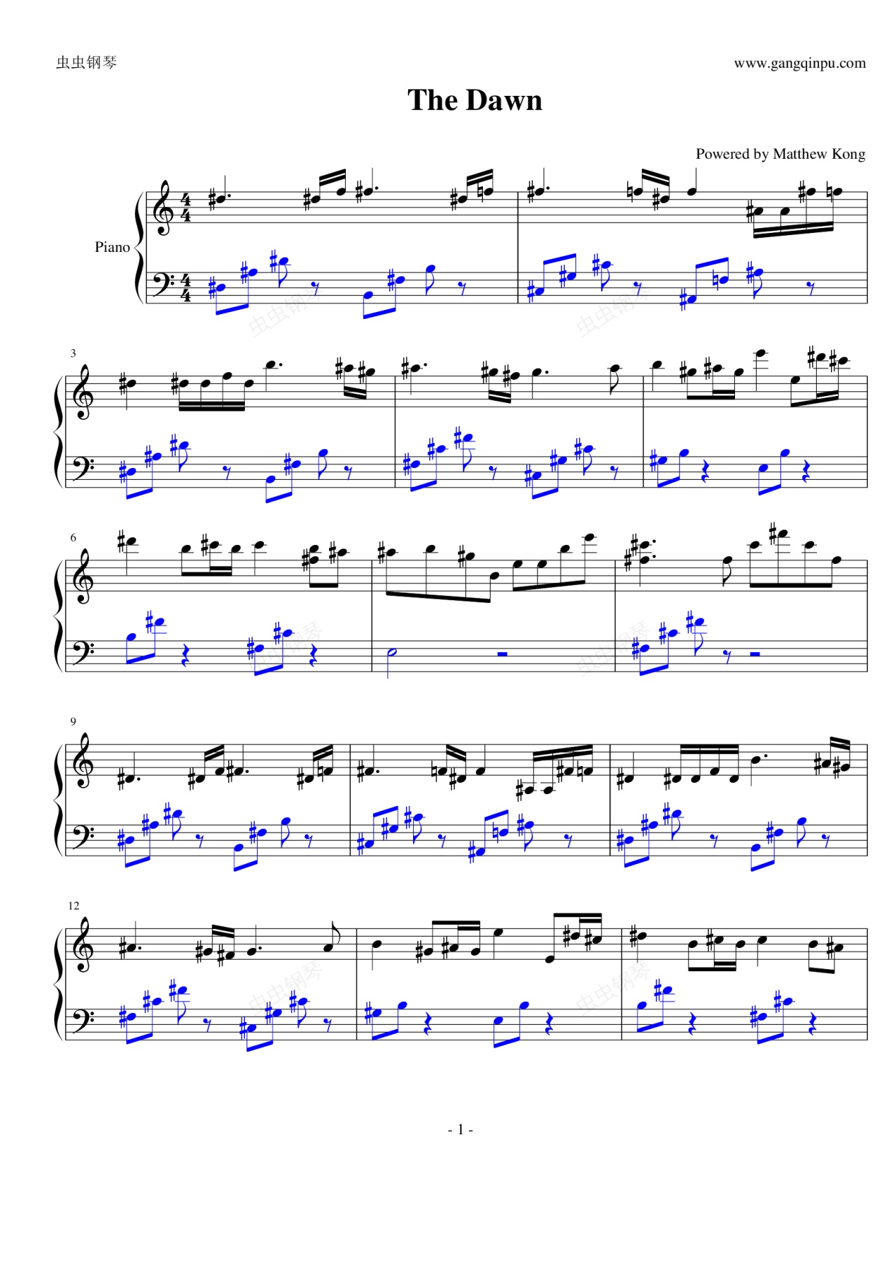 钢琴谱:The Dawn