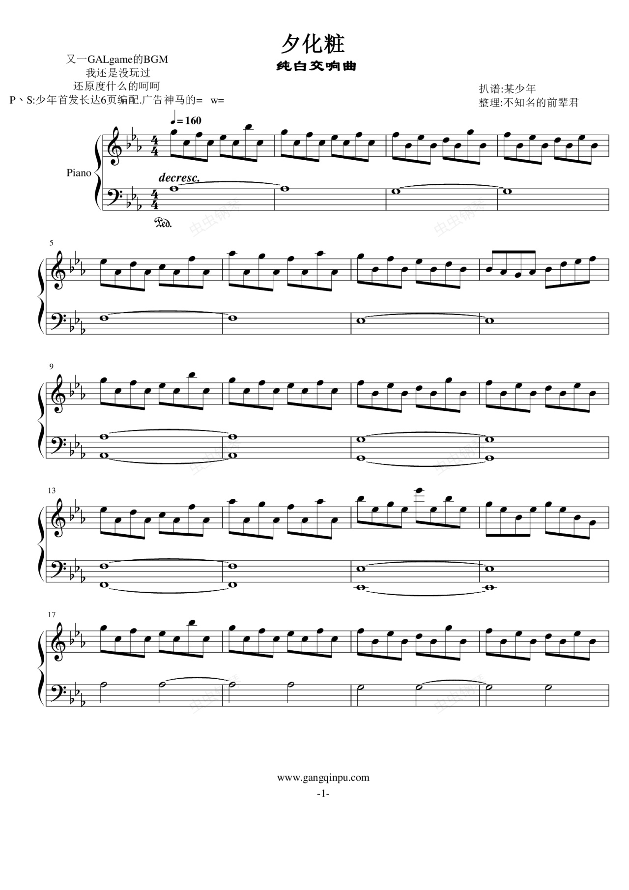 钢琴谱:夕化粧【纯白交响曲】